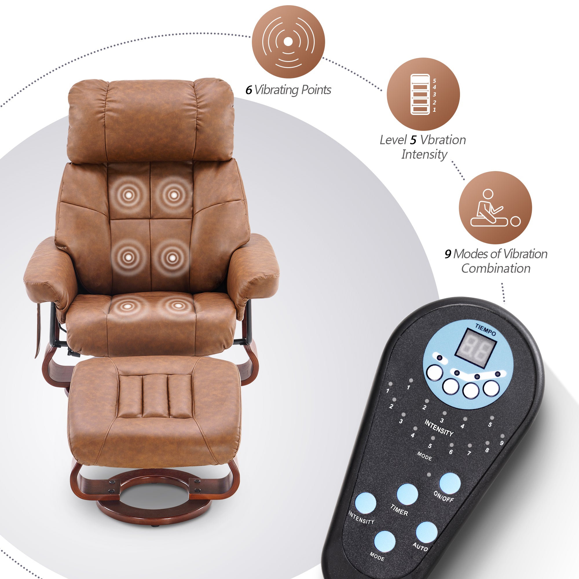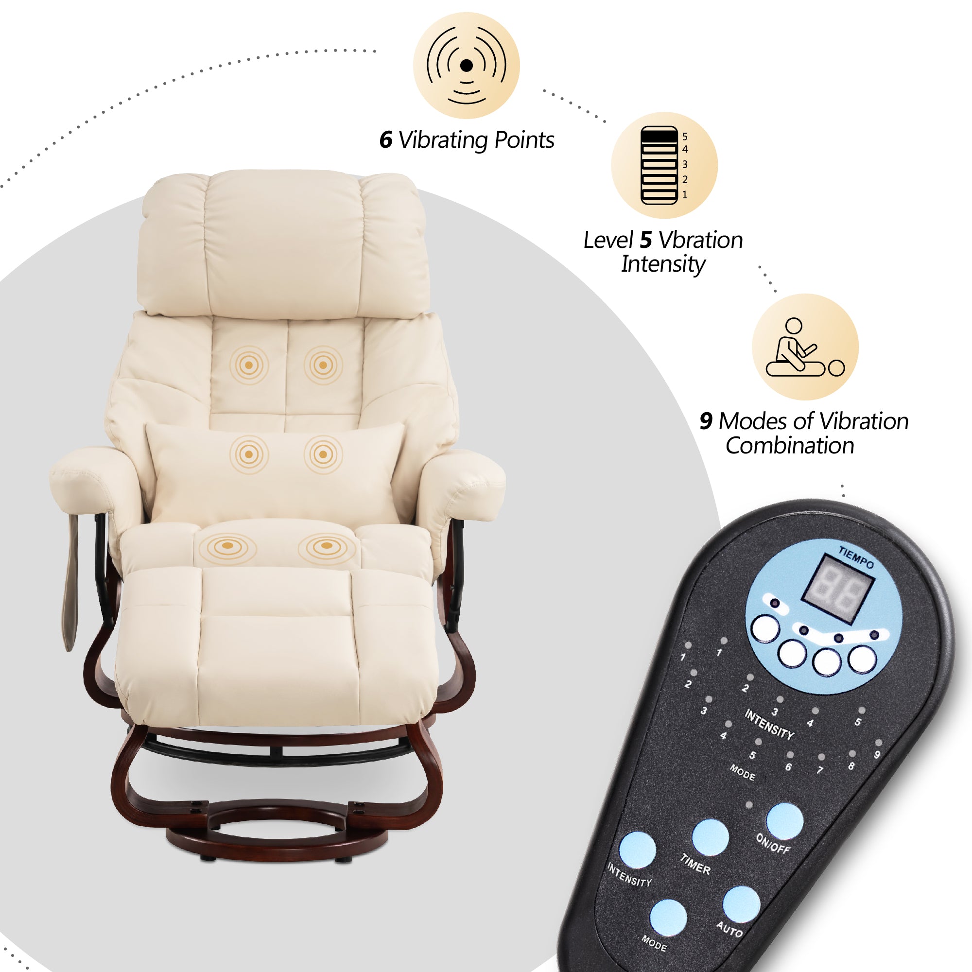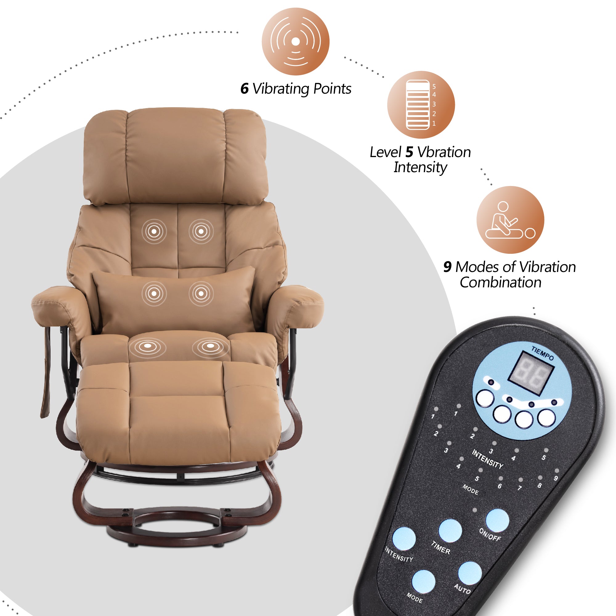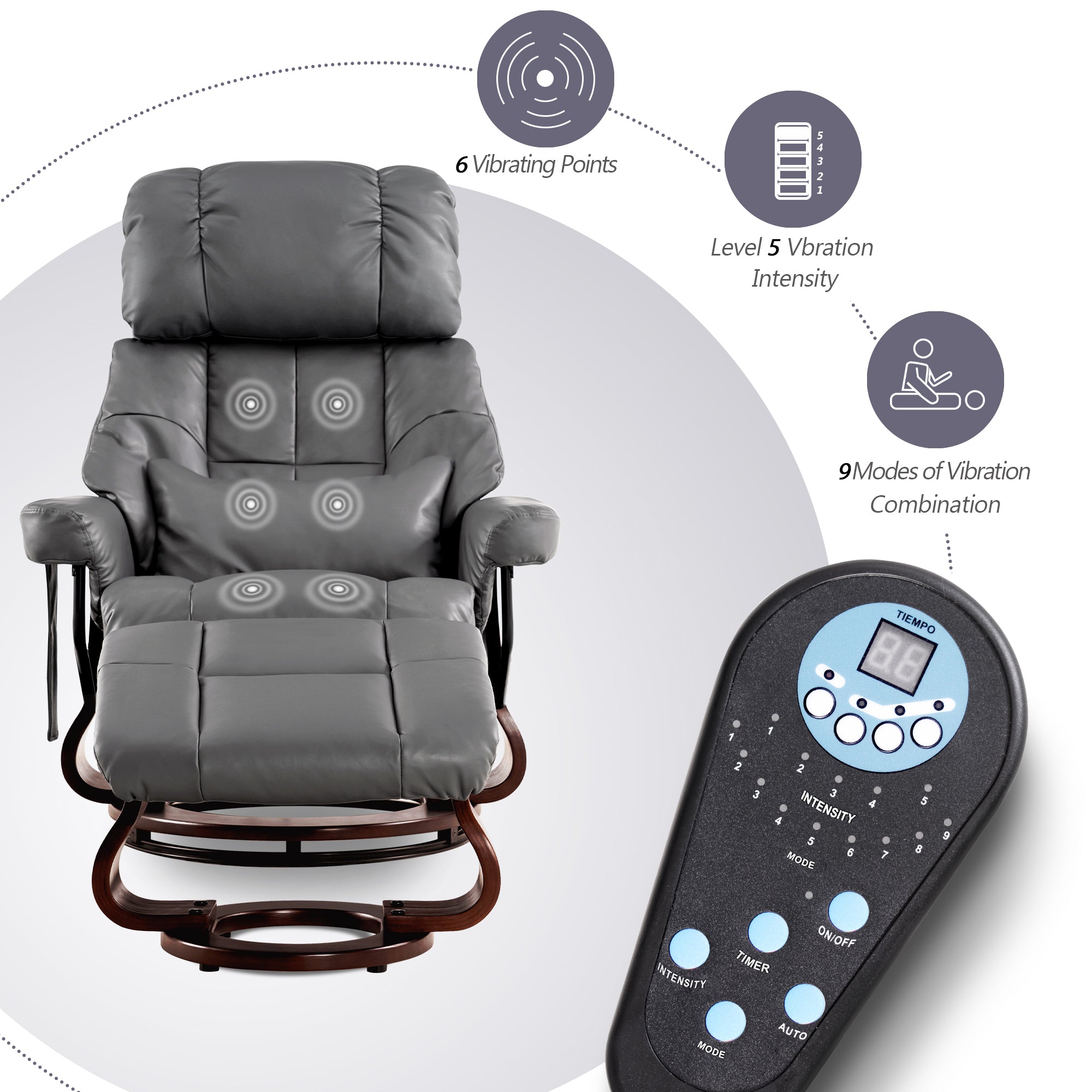- 3 massage positions for back, lumbar, and thighs, with 5 modes and 6 nodes