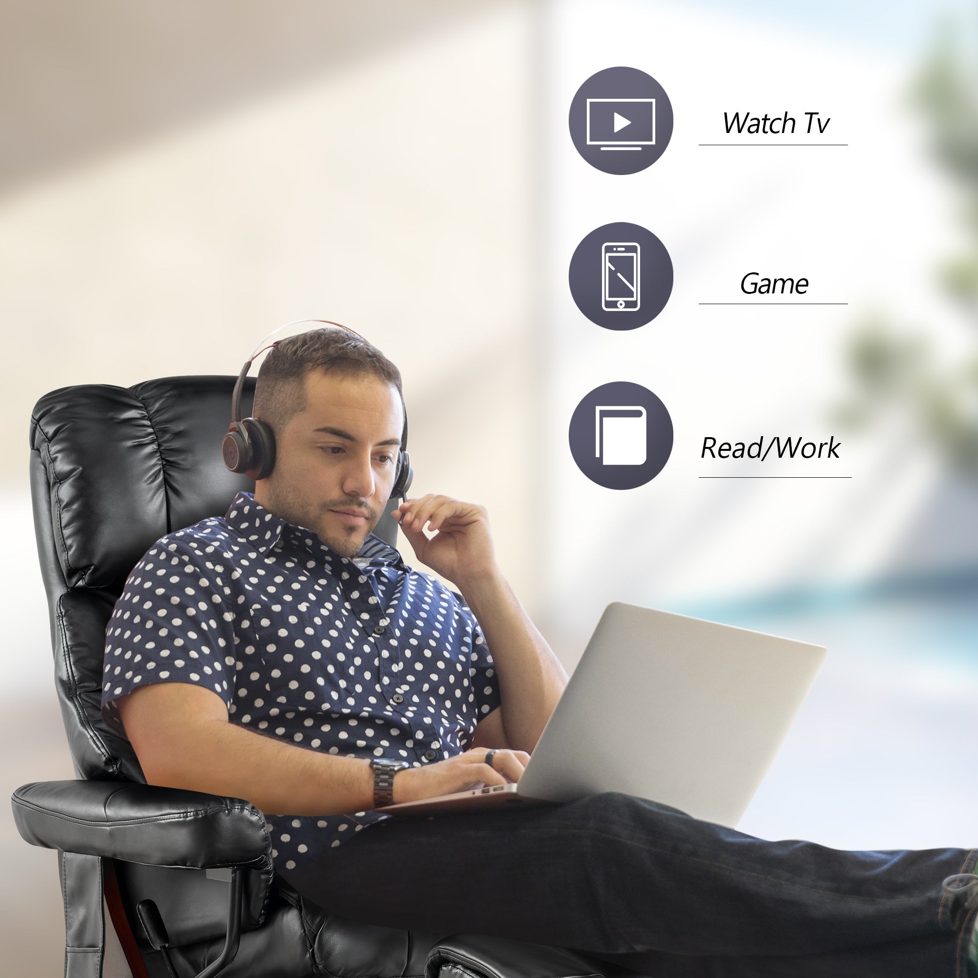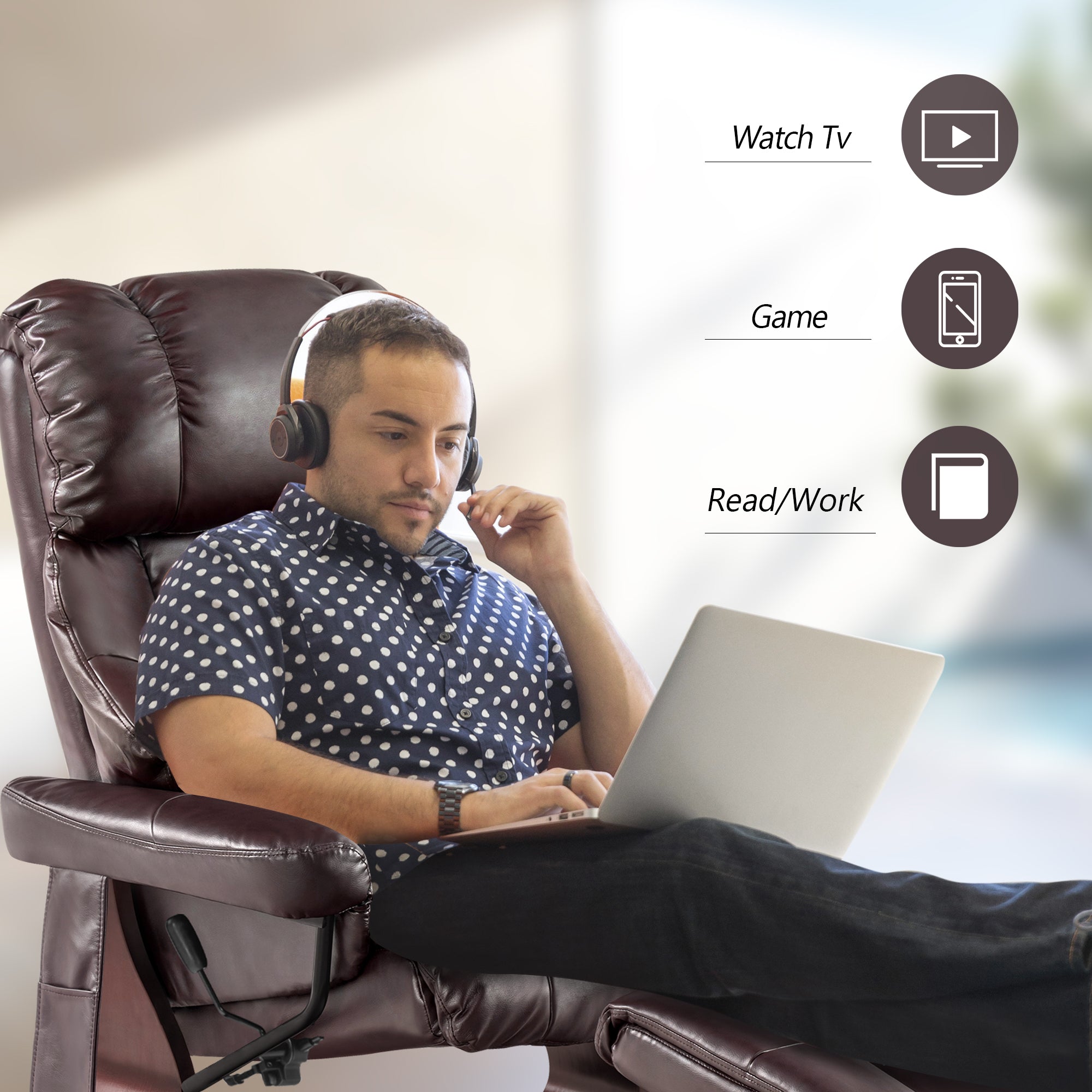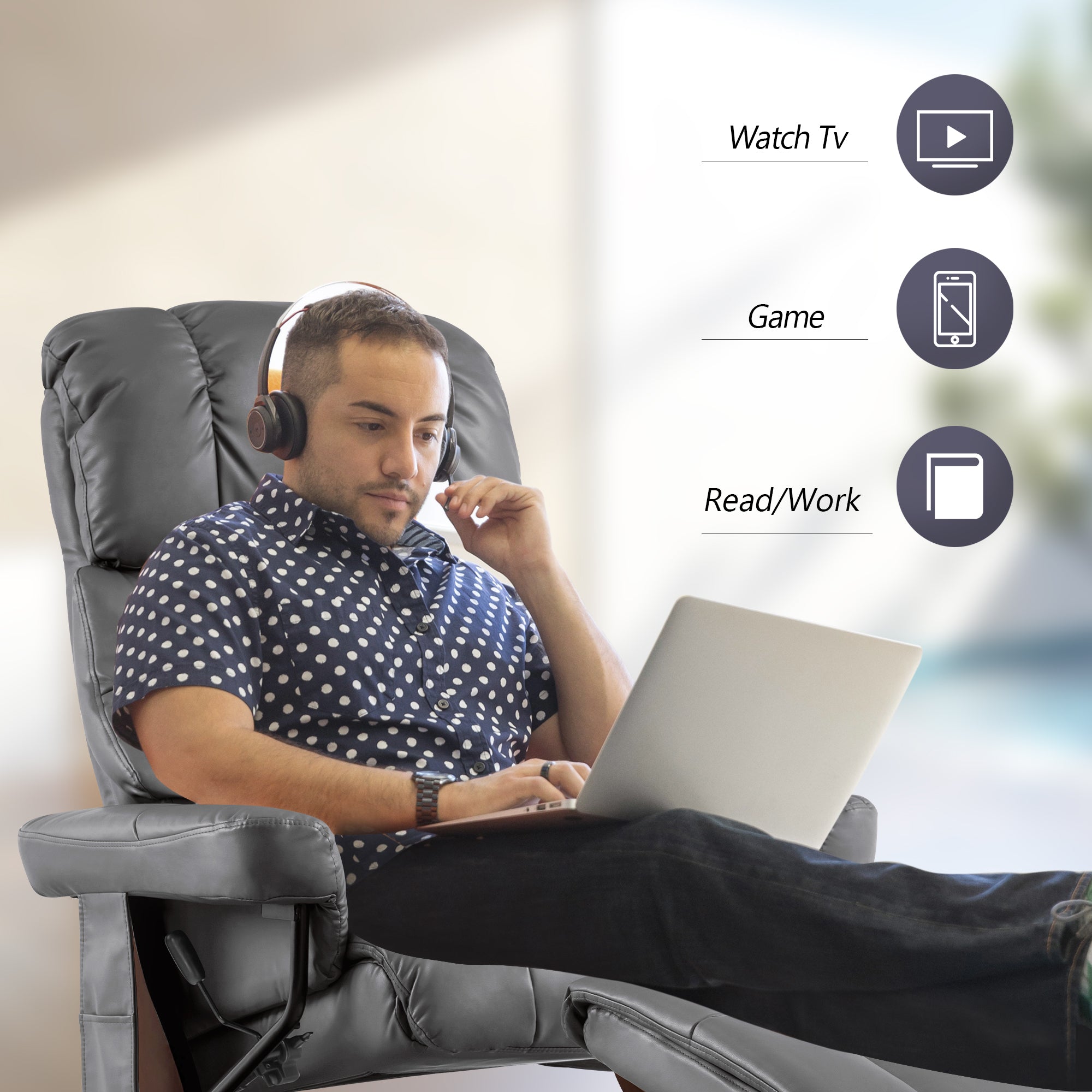 - The recliner adjusts to your movements, with an ottoman for comfortable leg support
