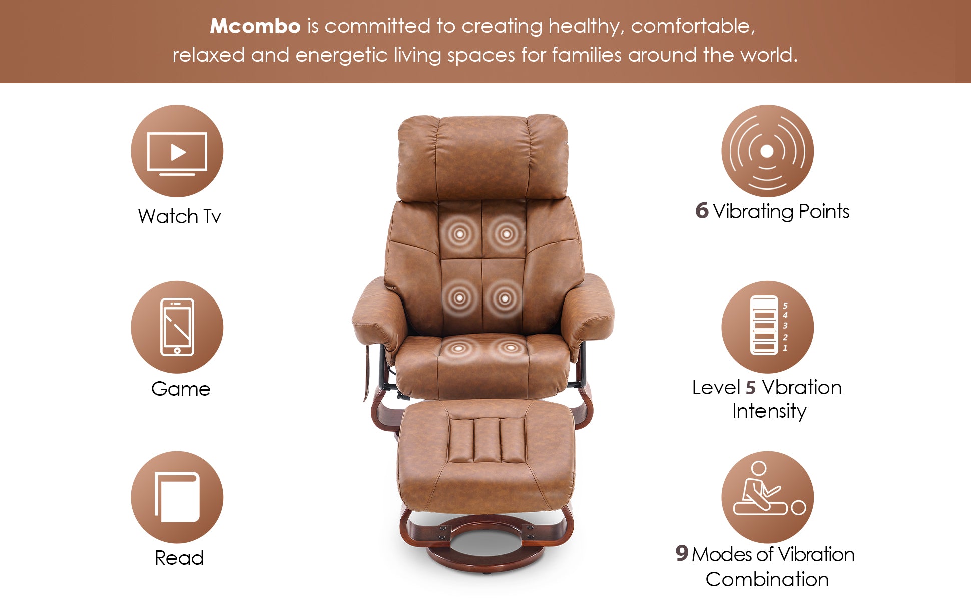 Swivel Recliner with Ottoman, with Massage, Faux Leather 9068