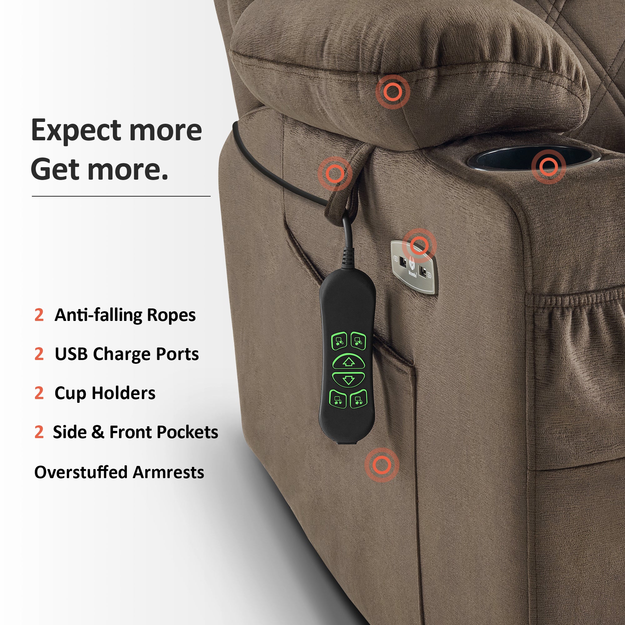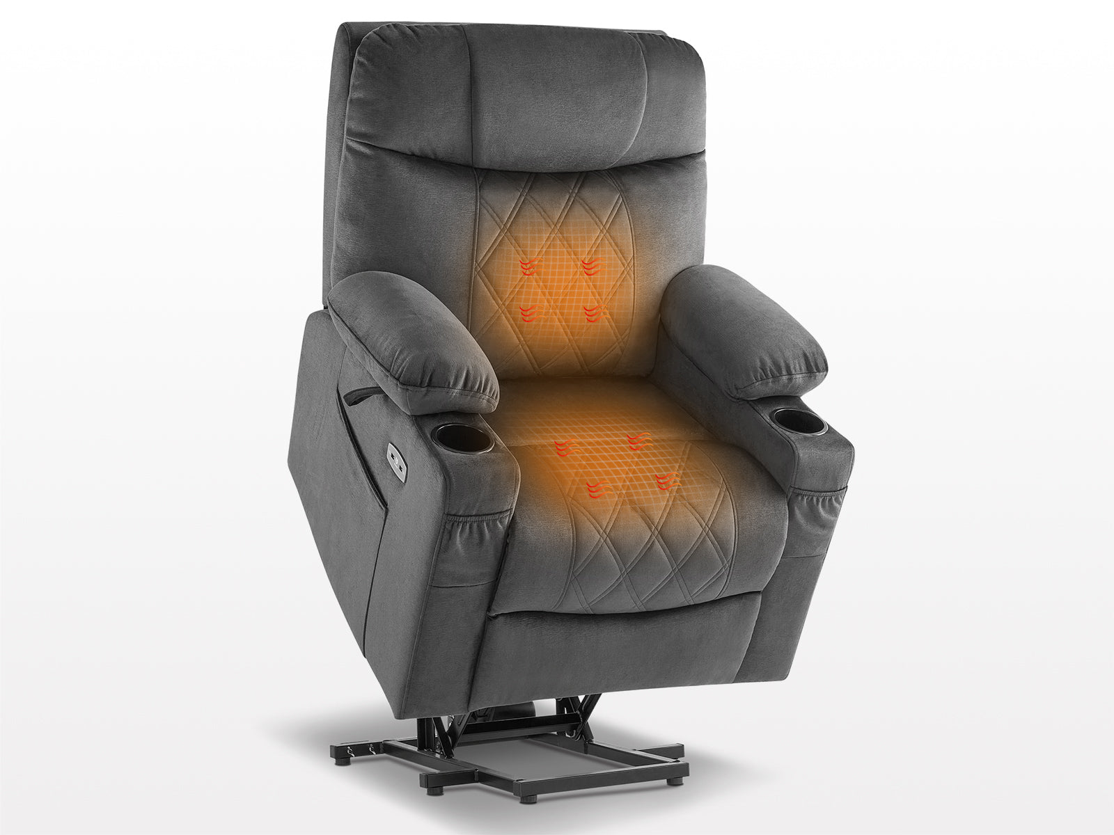 Power Lift Recliner Chair for Elderly, Dual Motor, Massage and Heat, Fabric 7222