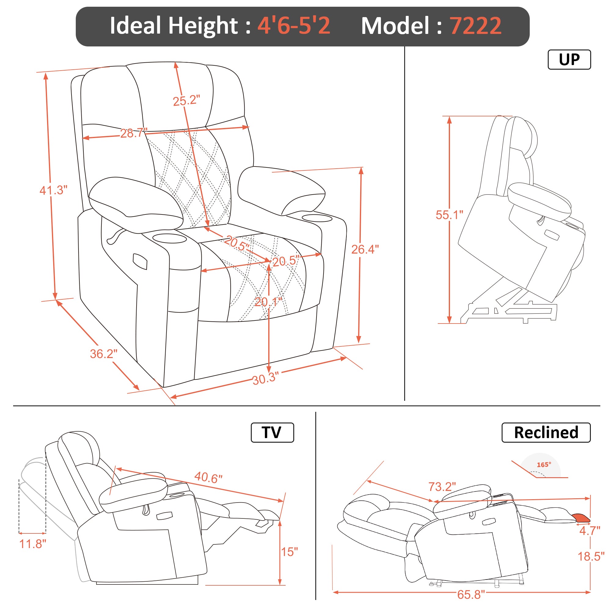 Reclining Angle: 165°
