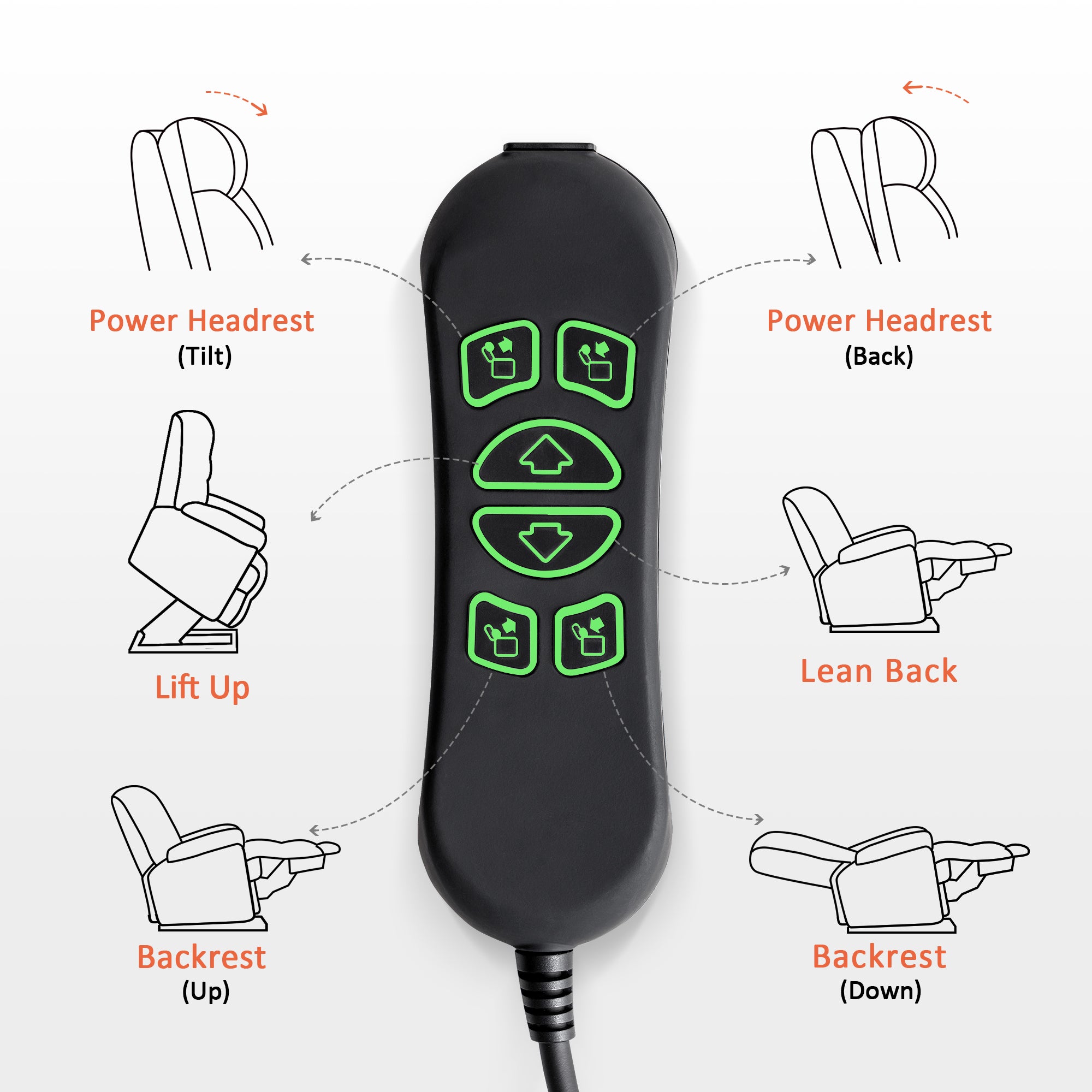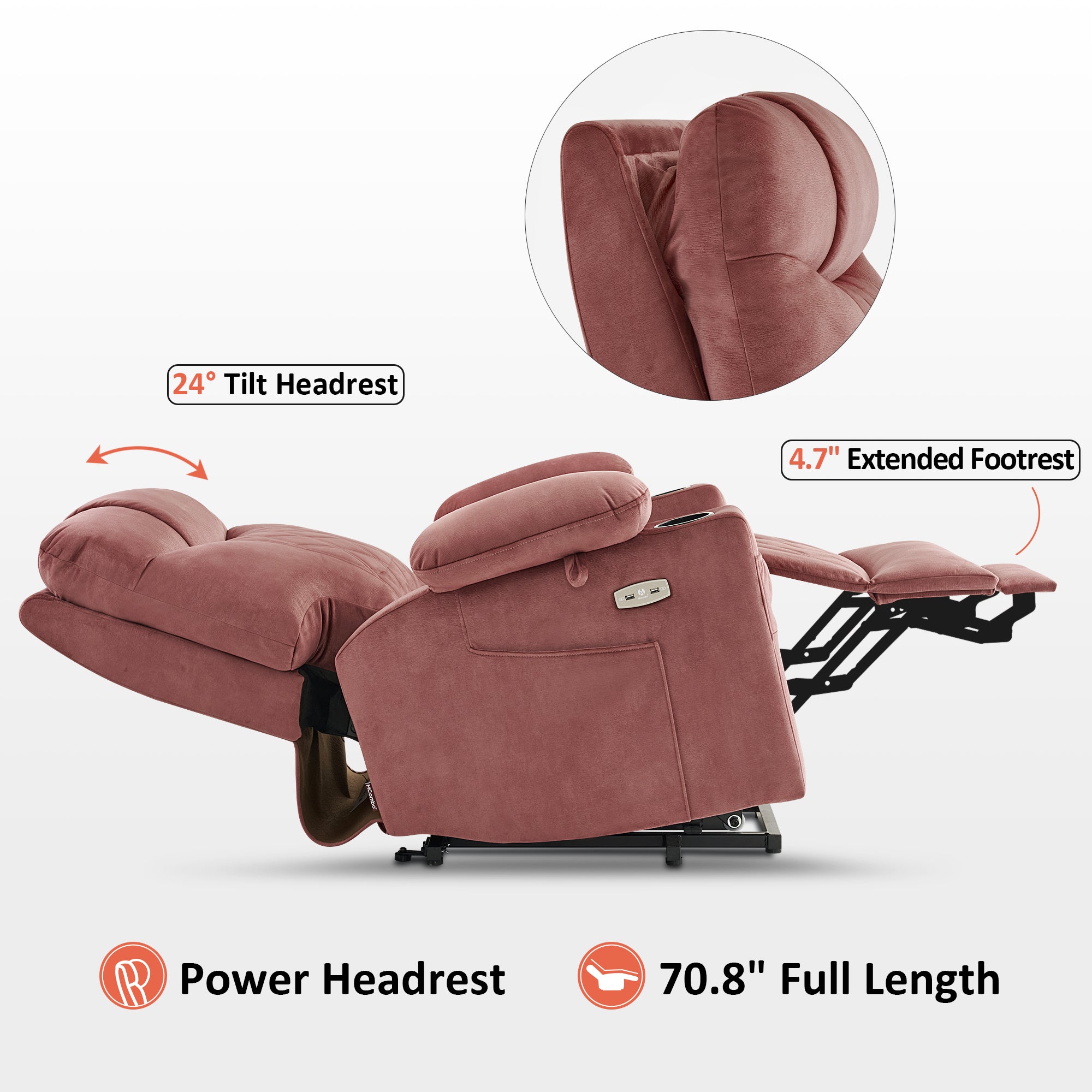 - Adjustable headrest for custom comfort while sitting upright or sleeping.