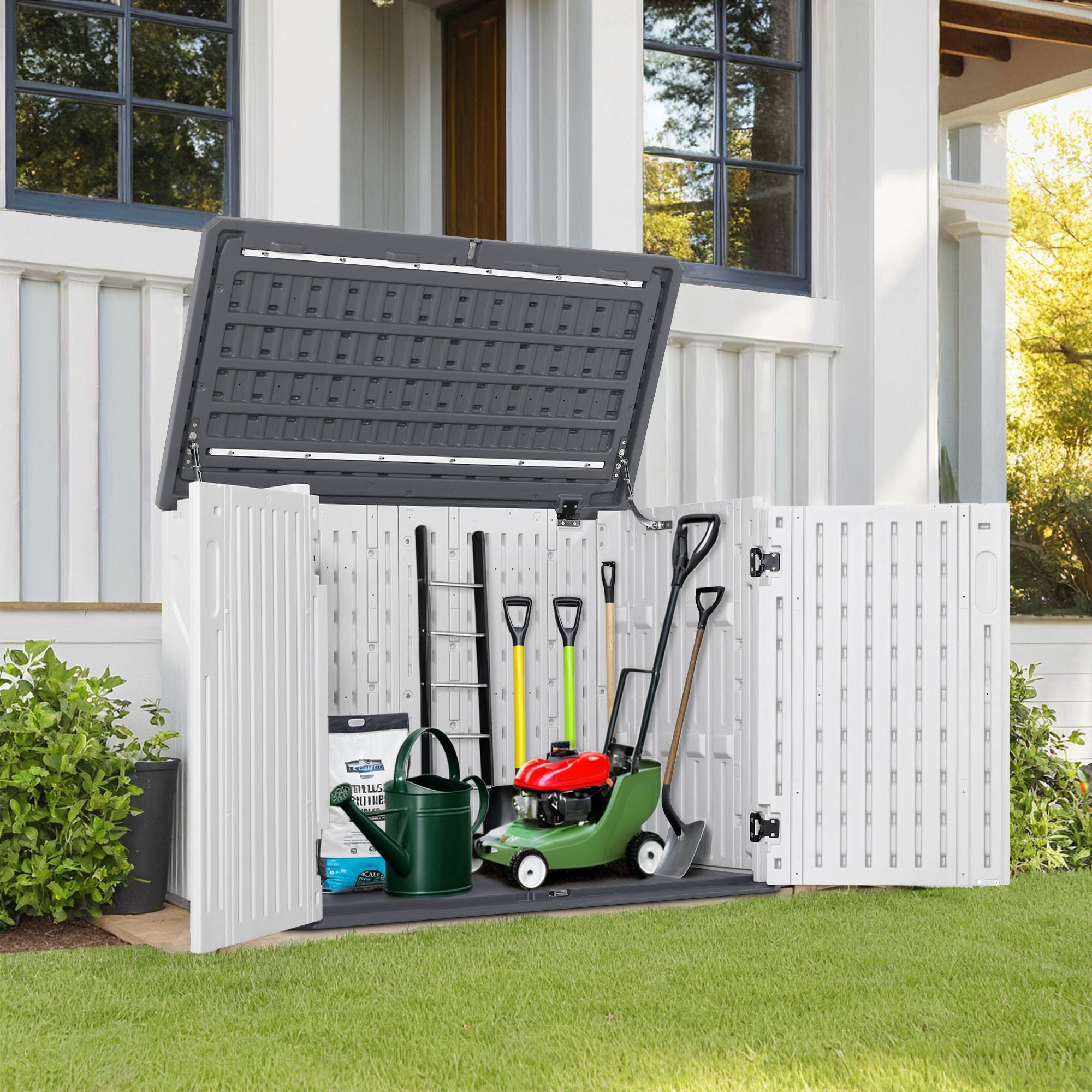 Floor Included: The 1.4 inch thick double-layer floor of the resin garden shed provides stability to the base while keeping the interior dry