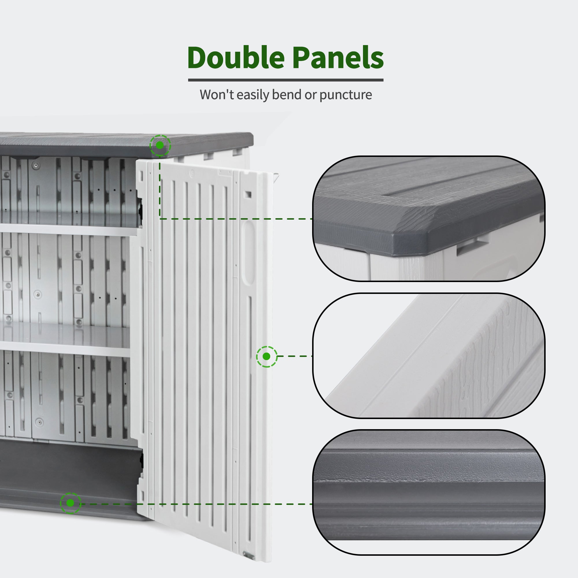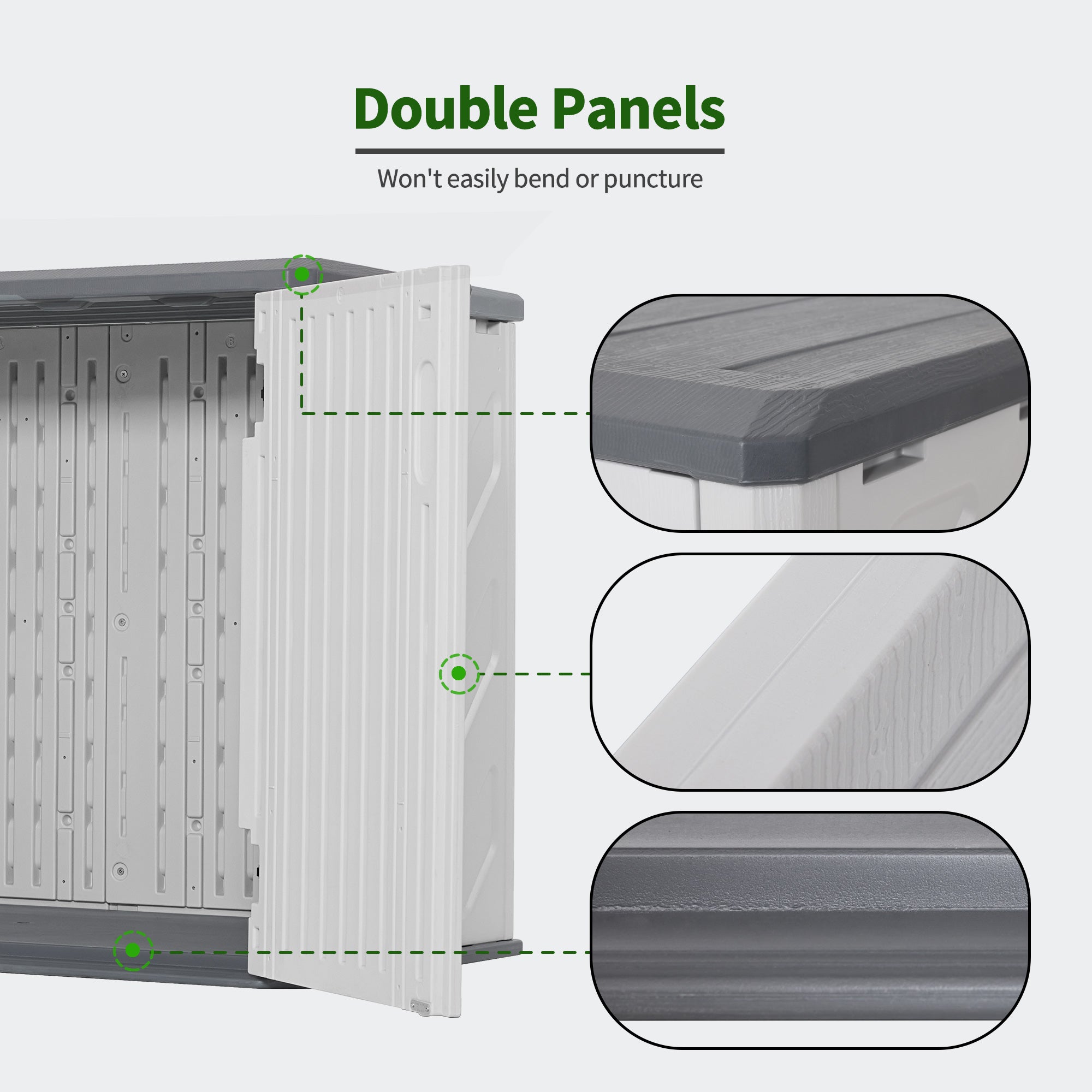 Double Panels: The shed outdoor storage features double panels that won't easily bend or puncture