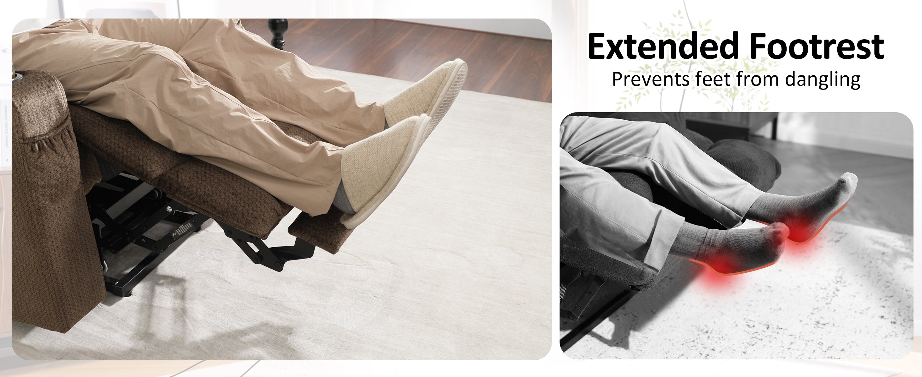 - 4.7" extended footrest ensures full stretch and foot circulation