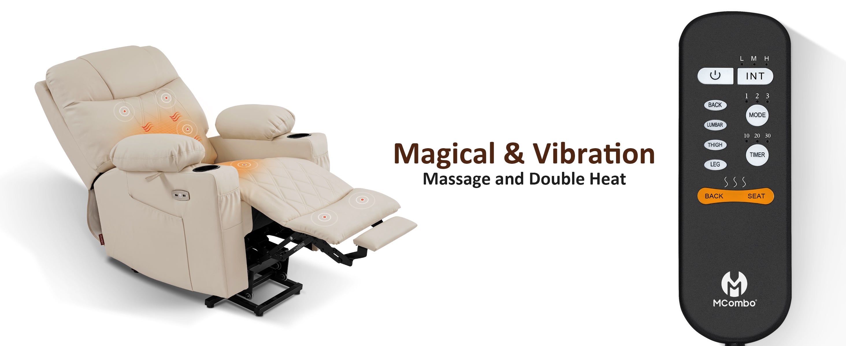 - Massage with 8 vibration points and lumbar heating