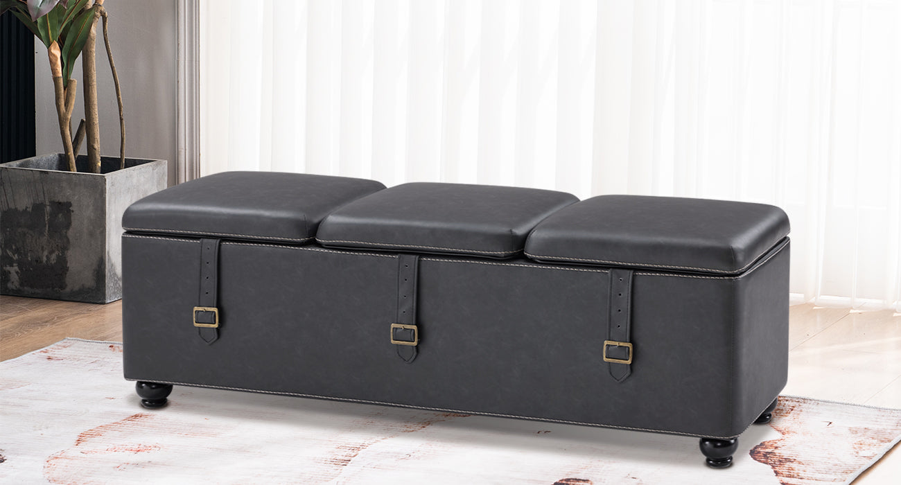 - [3 Storage Compartments] With 3 bench lids, this storage bench offers 3 “hidden storage options” for household objects. Just open one of lids at will and your stuff can be organized, without removing the entire lid.