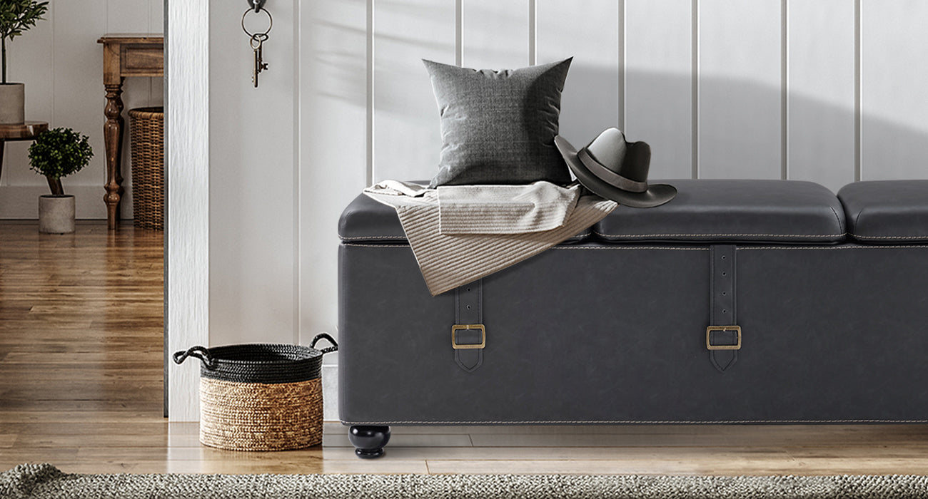 - [Muliti-Purpose Ottoman] Not just a bed bench, this ottoman fits multiple scenarios: it can be used as a footrest at the foot of your bed, a shoe bench, window bench in the entryway, a makeup stool in the closet; Also, it could be a coffee table, side table or just an extra seating for guests bench.