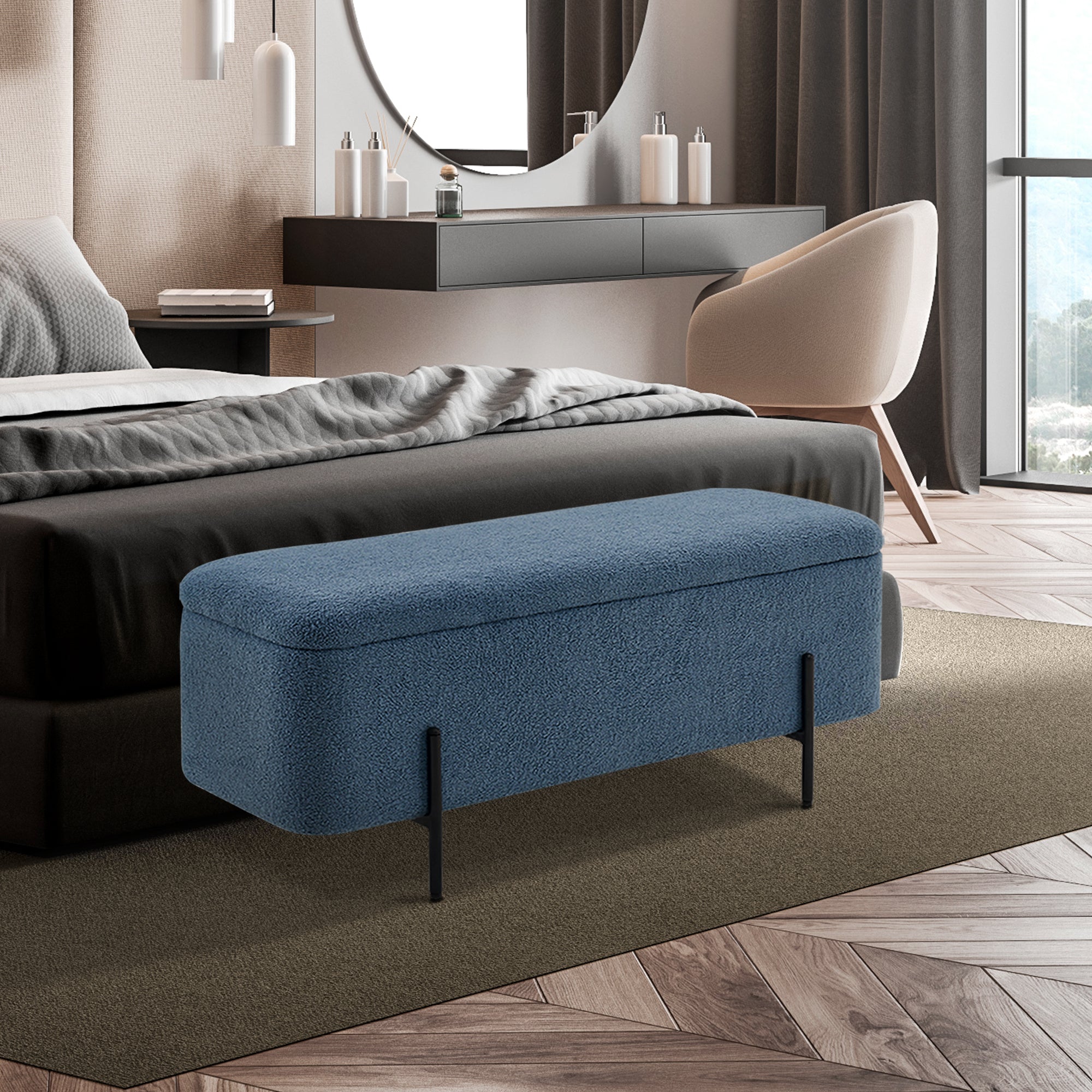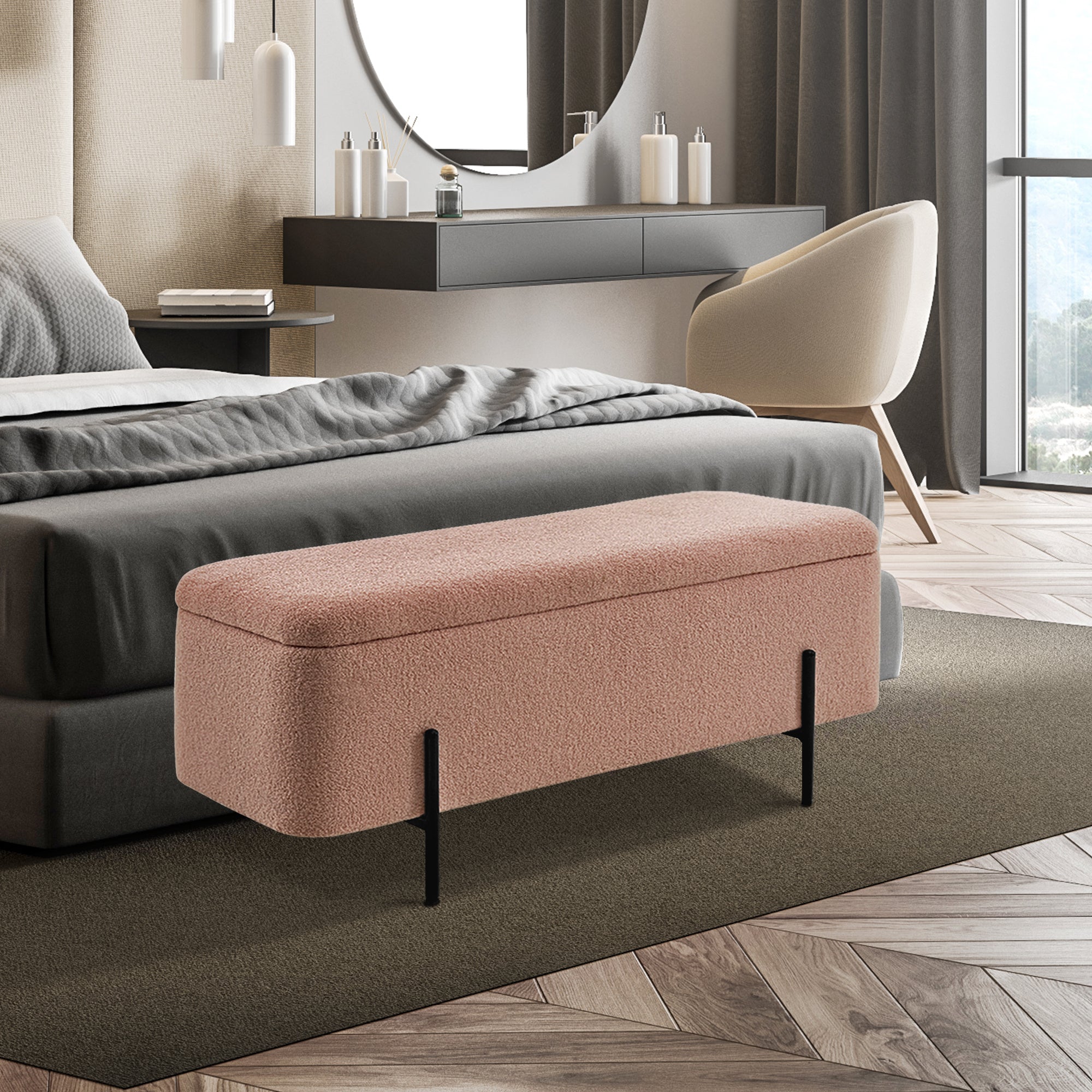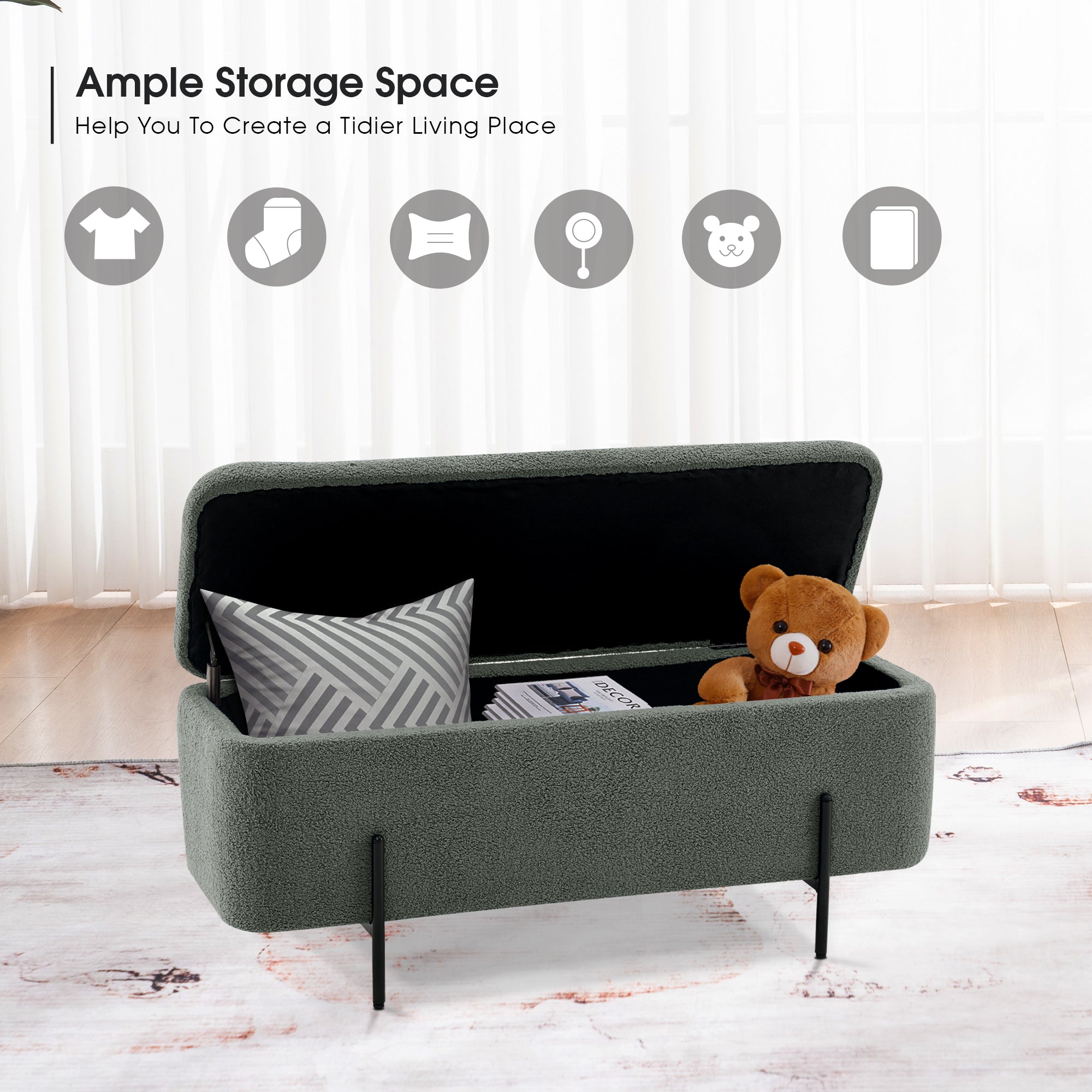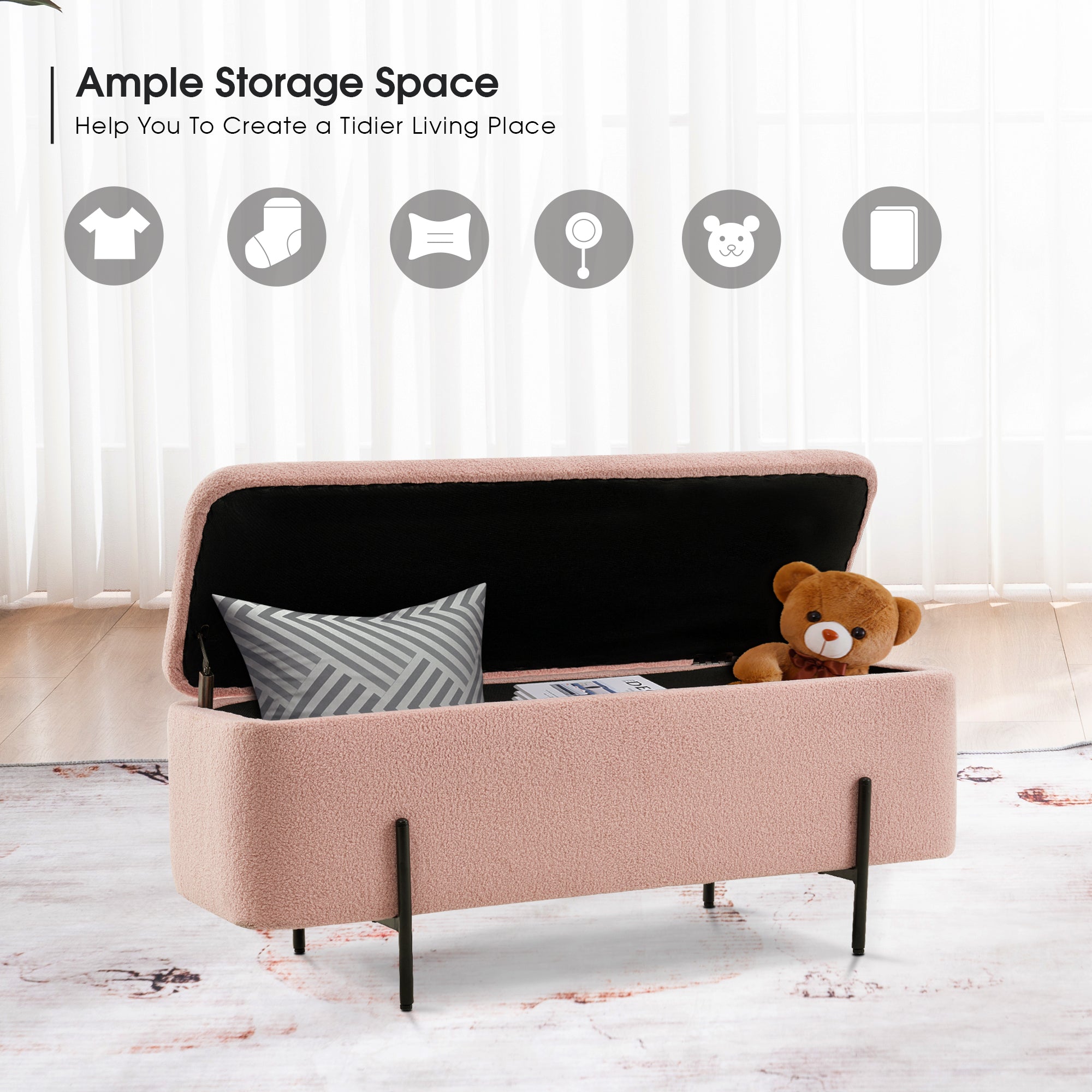 - [Open Top Storage Space] Soft pressure hinges design is easy to open and close the bench top, when you want to storage clothing and any other things. Besides, the built-in smooth hinges have strong bearing capacity, making the ottoman bench more sturdy and durable.