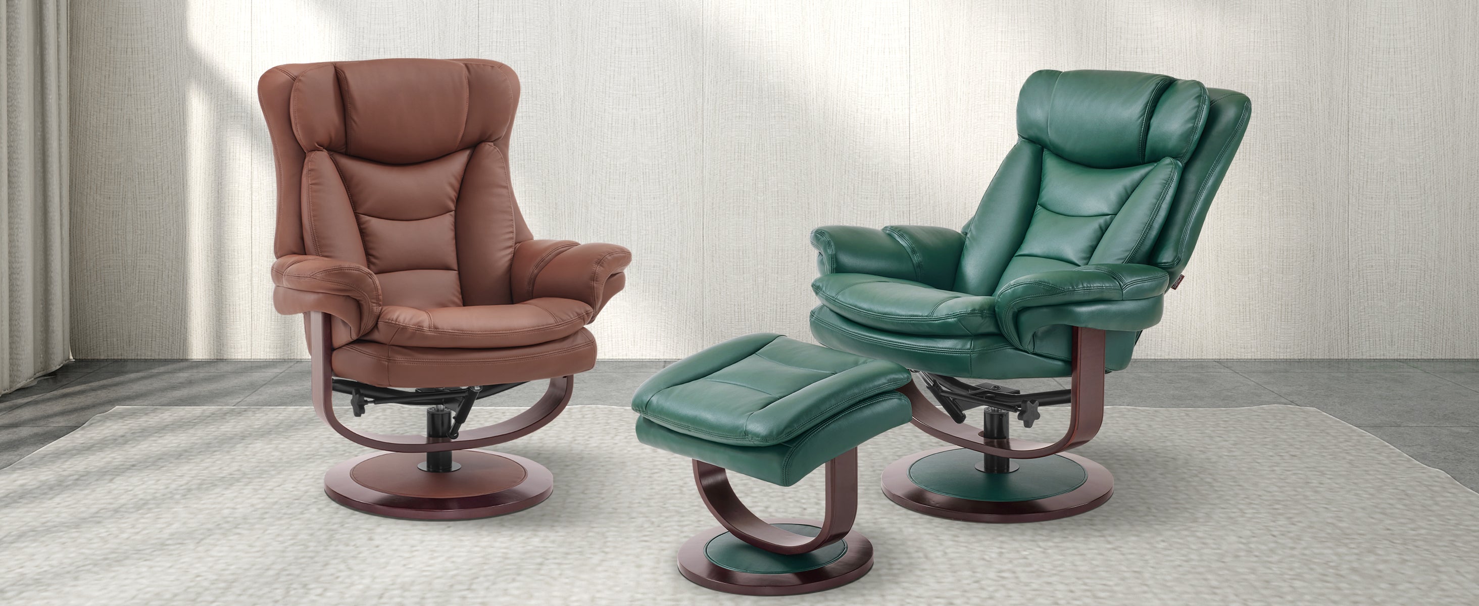 Swivel Recliner with Ottoman, Faux Leather 4651
