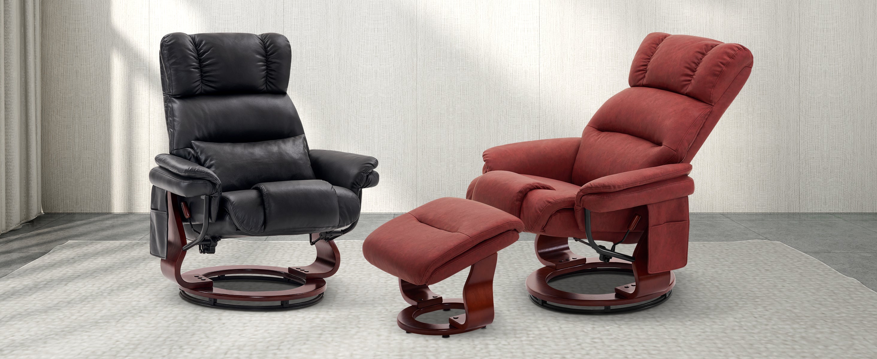 Swivel Recliners with Ottoman, with Massage, Faux Leather 4832