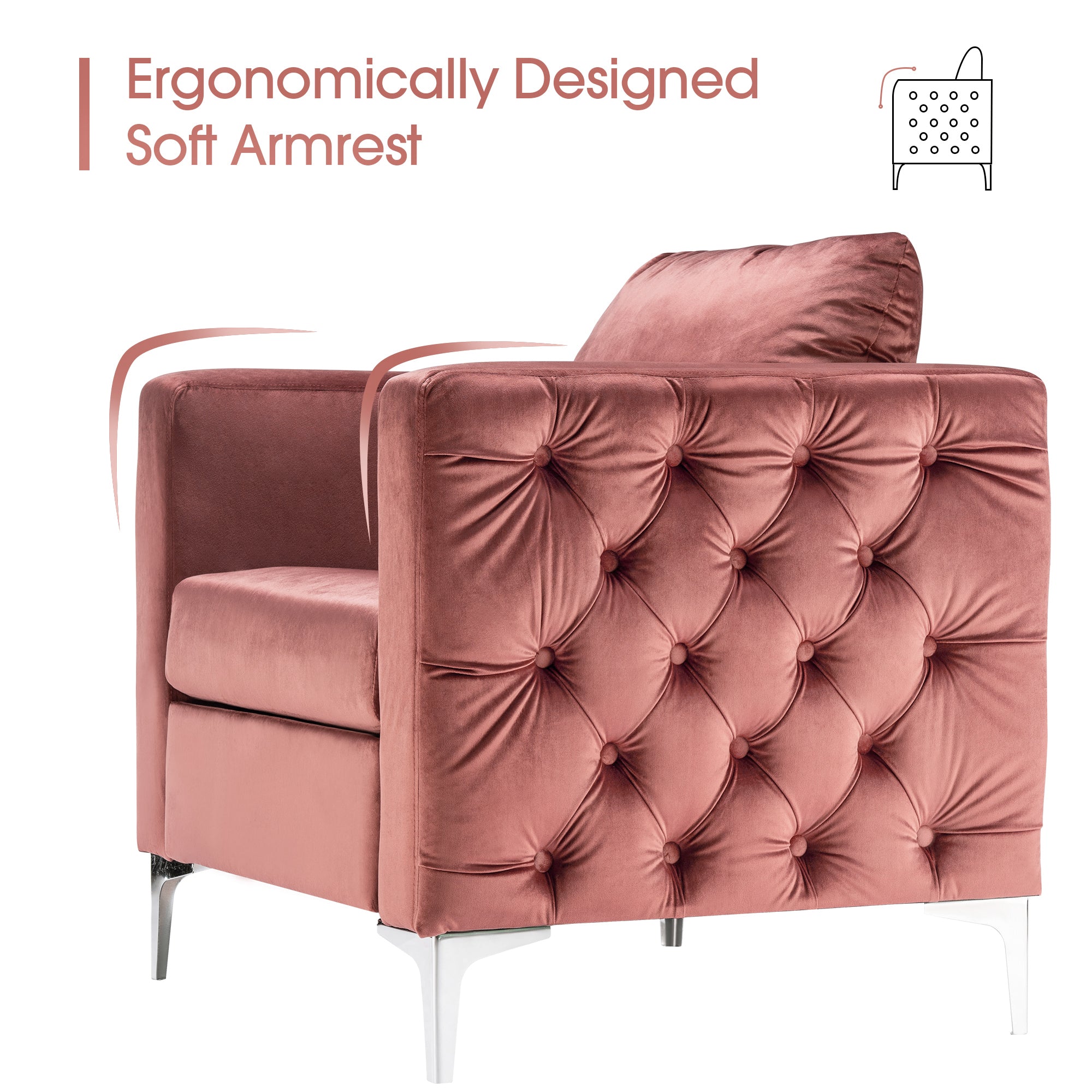 - 【Soft Velvet Fabric】The living room chair adopts a soft velvet finish. The velvet fabric has a delicate touch and does not shed hair or balls, does not cause any irritation to the skin. Velvet is durable and not easy to fade. For cleaning, it is recommended to wipe gently with a towel dampened with warm water, and then use a paper towel to absorb the moisture.