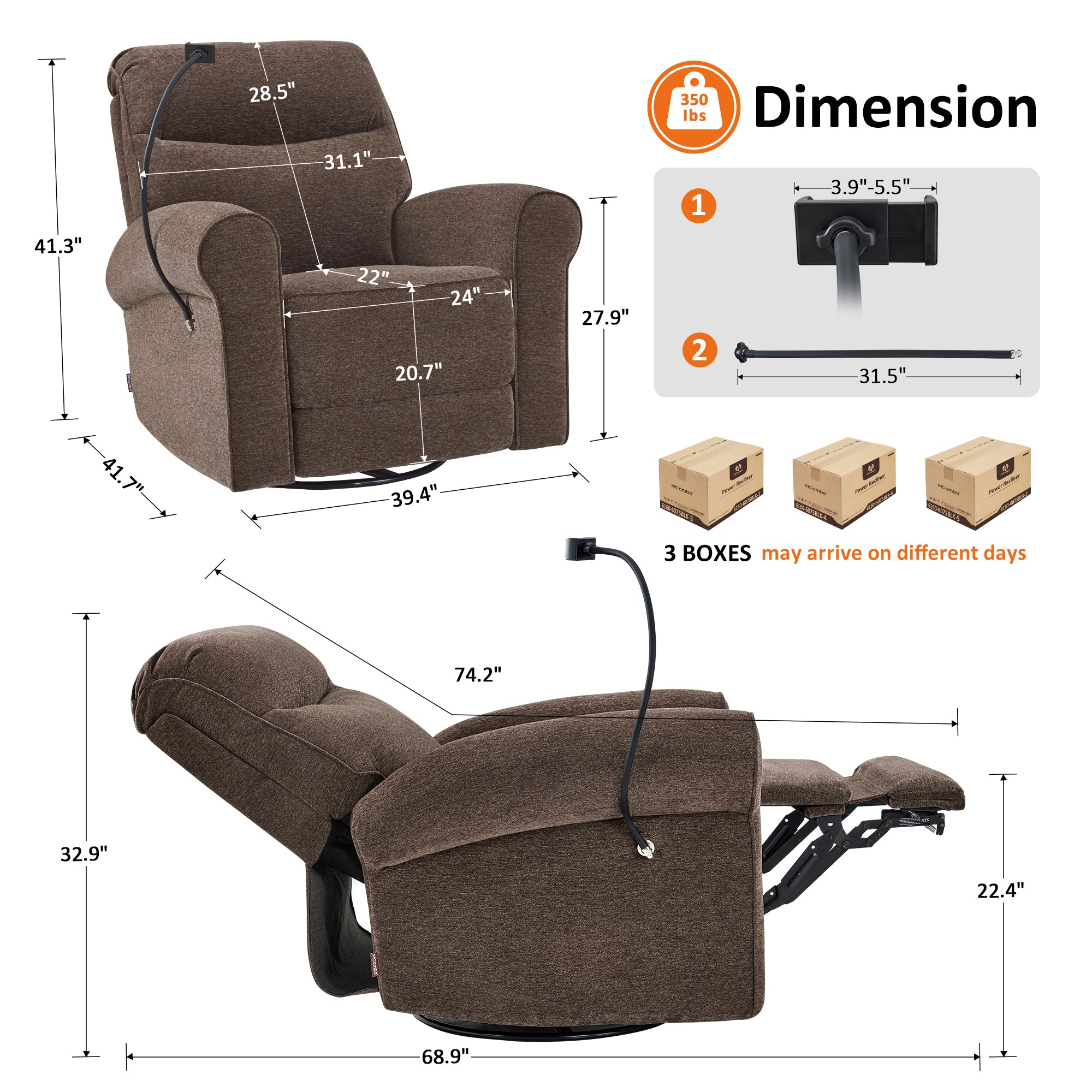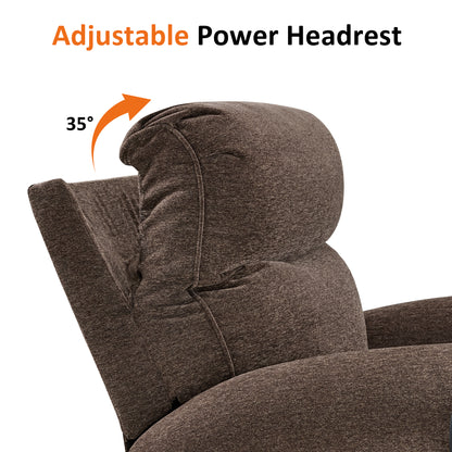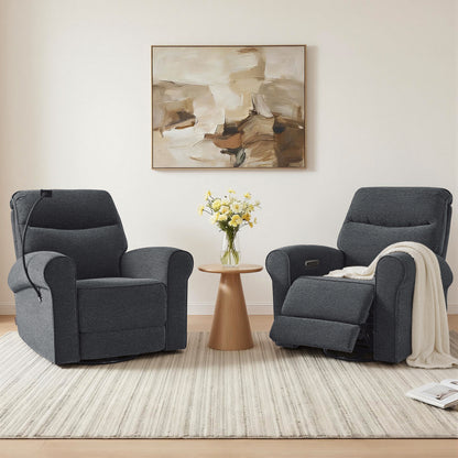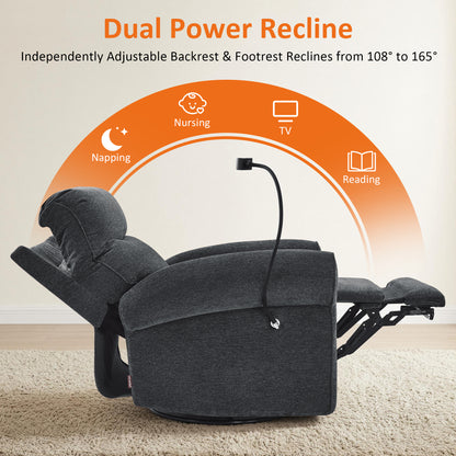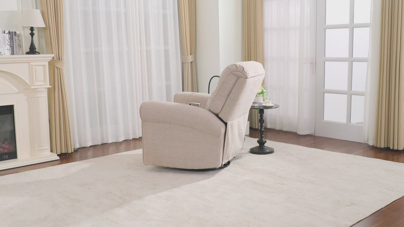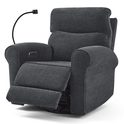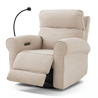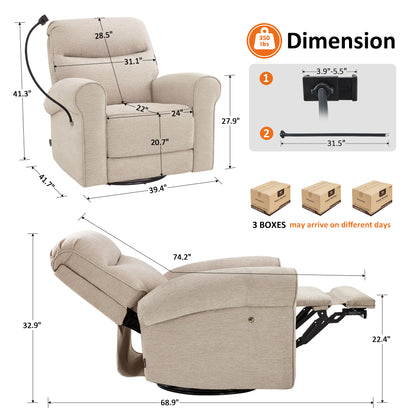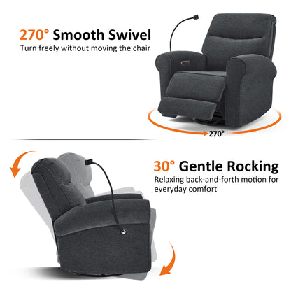 MCombo Triple Motor Power Swivel Rocker Recliner Chair, Glider Rocking Chair with Adjustable Headrest, Extended Footrest, Dual USB Ports, Phone Holder, for Living Room & Nursery, Fabric PR638