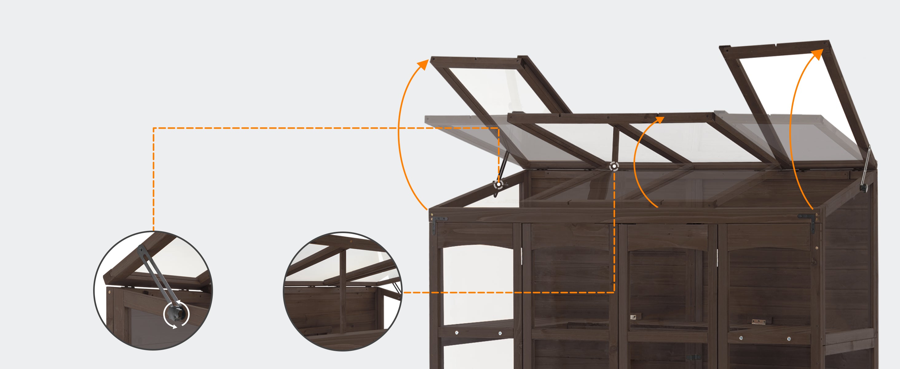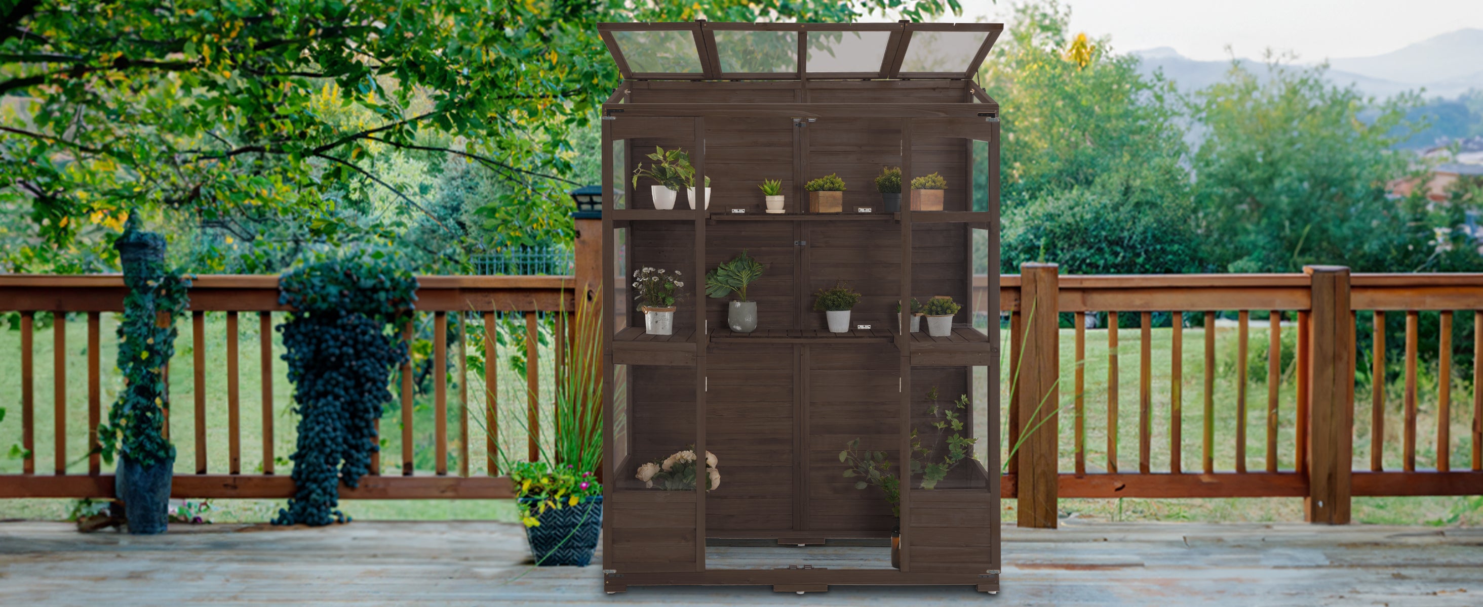 - Fir Wood: The wooden greenhouse is made of high-quality pure fir wood, and the exterior has been polished to express a rustic style. Medium brown blends easily with other décor and natural settings.