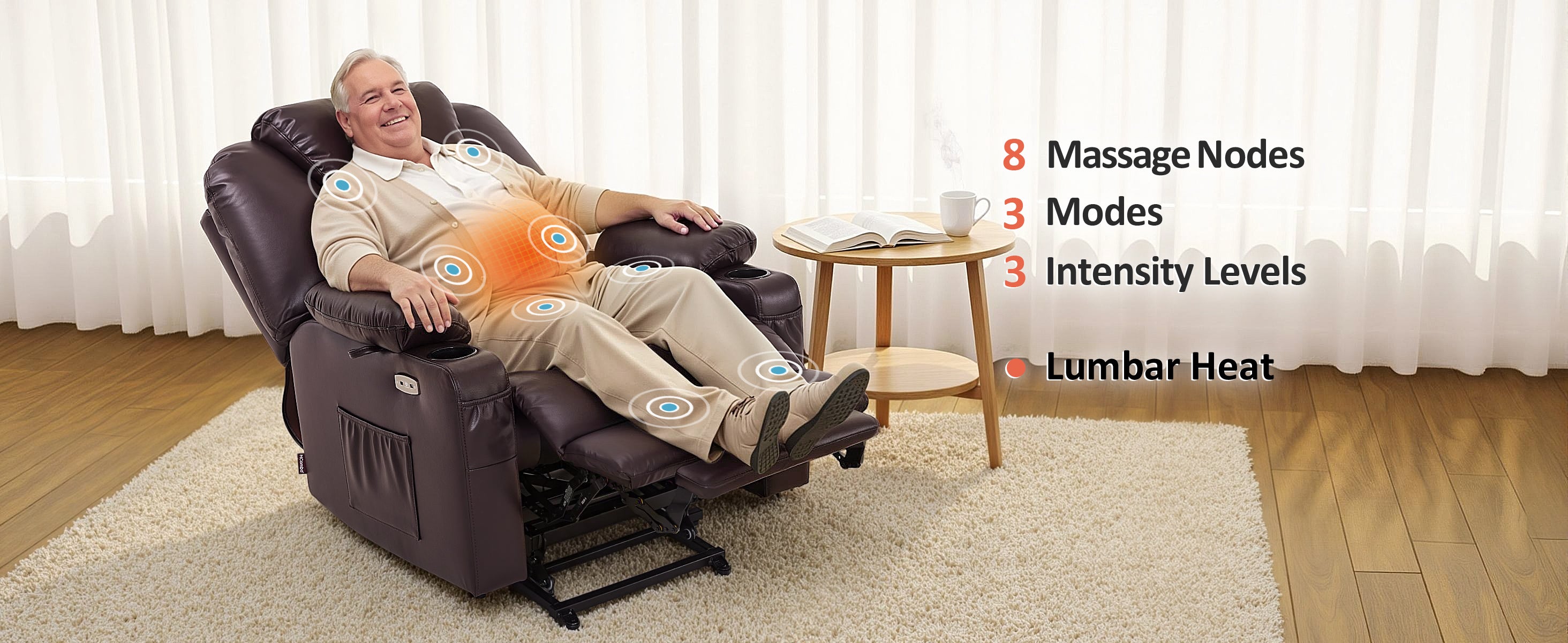 Power Lift Recliner Chair for Elderly, Massage and Heat, Faux Leather 7040|7516|7141|R7045|R7510