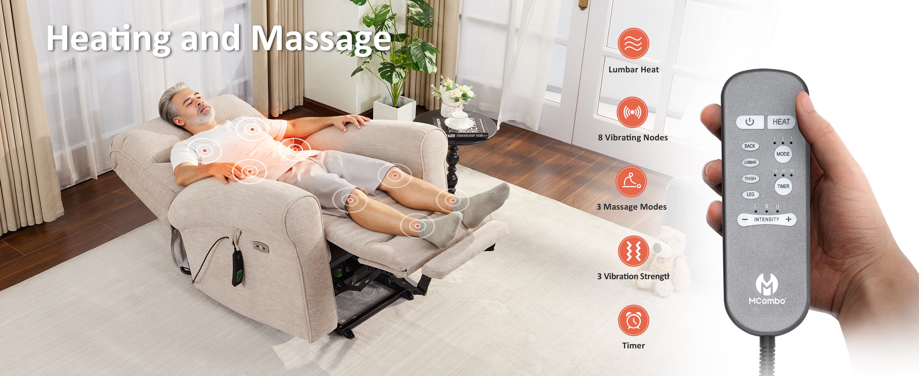 Power Lift Recliner Chair for Elderly, Dual Motor, Massage and Heat, Fabric 7666
