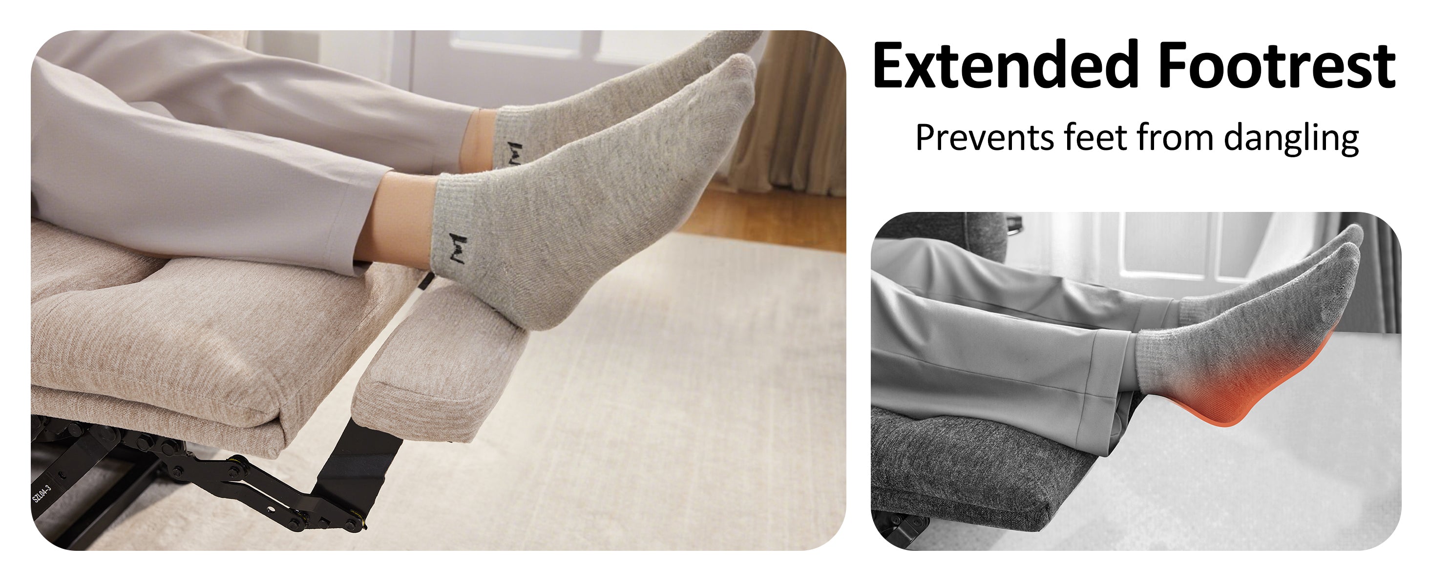 - 4" extended footrest ensures stretch fully and foot circulation.