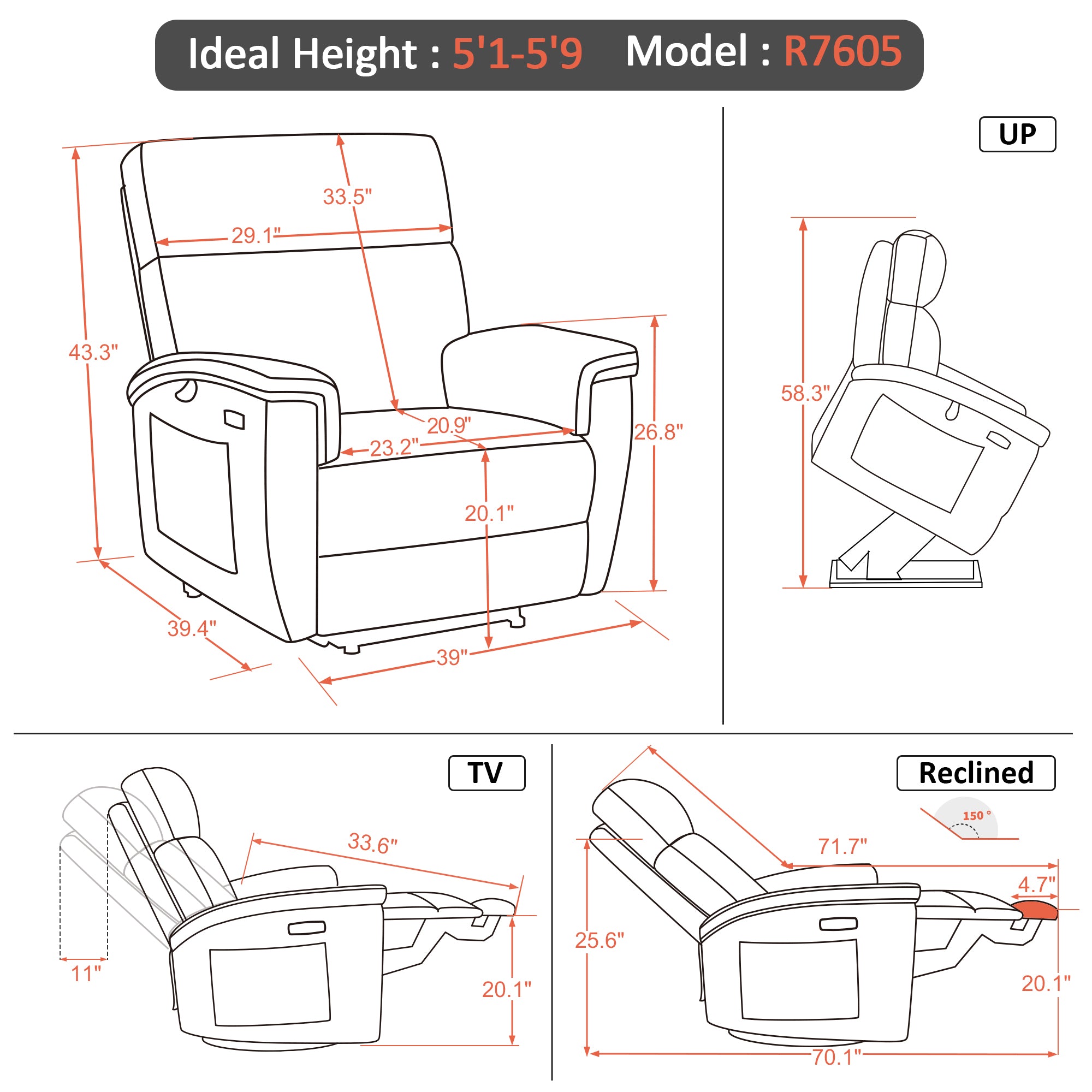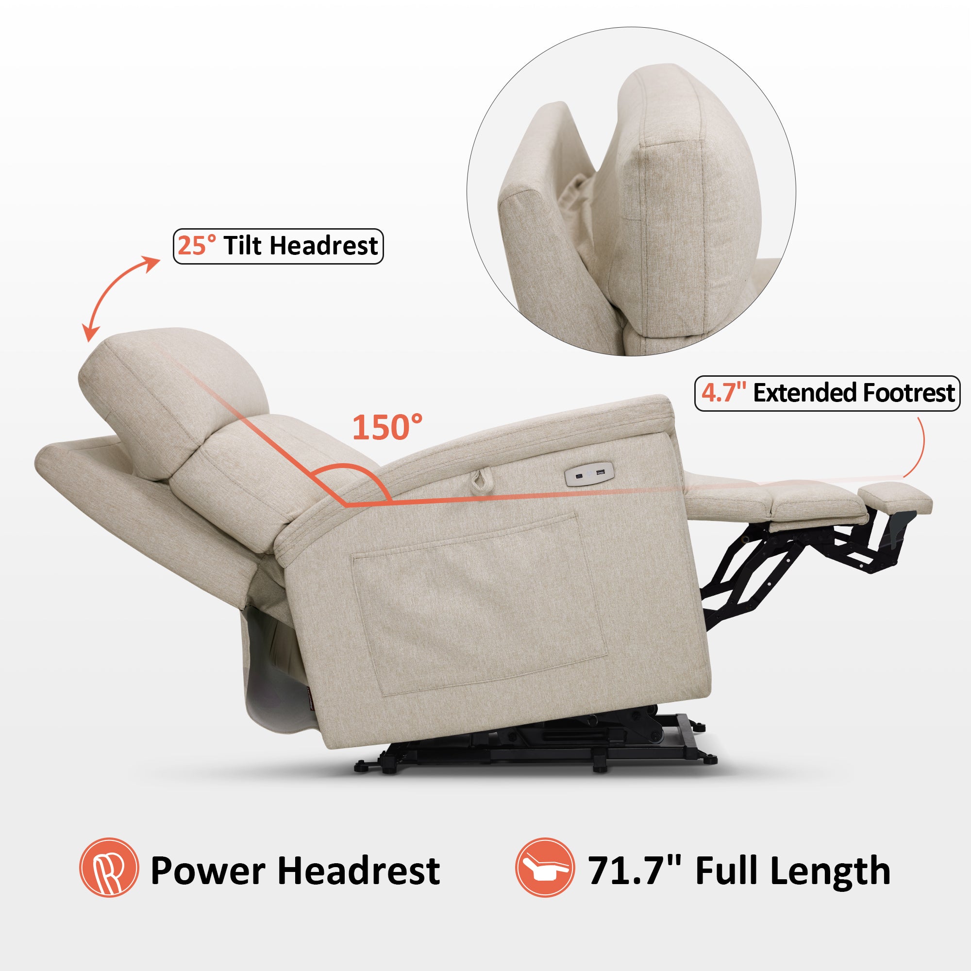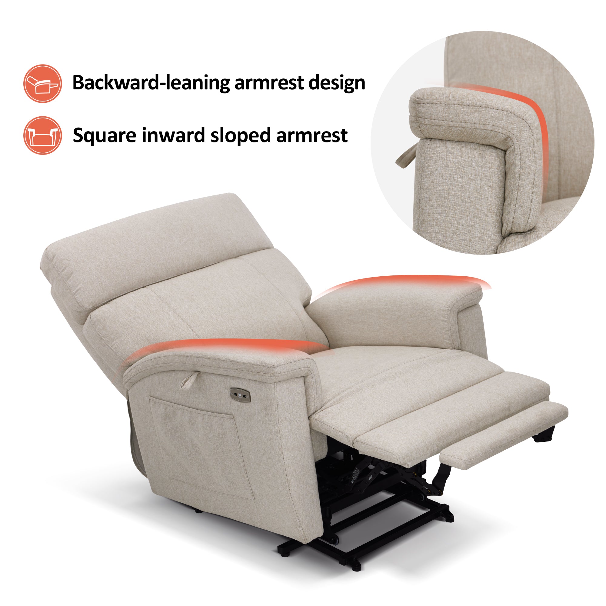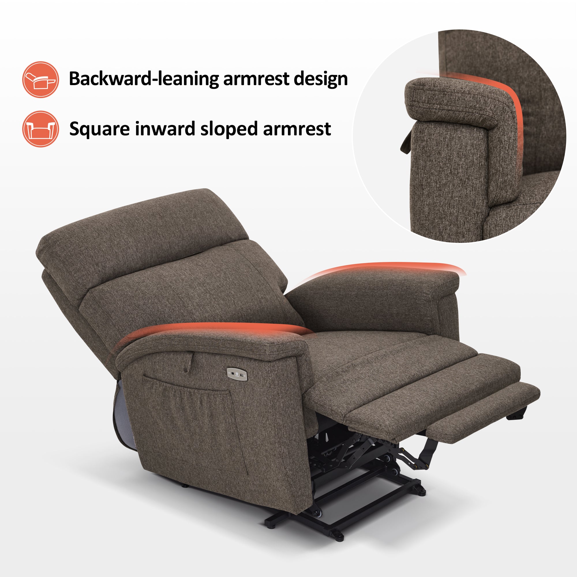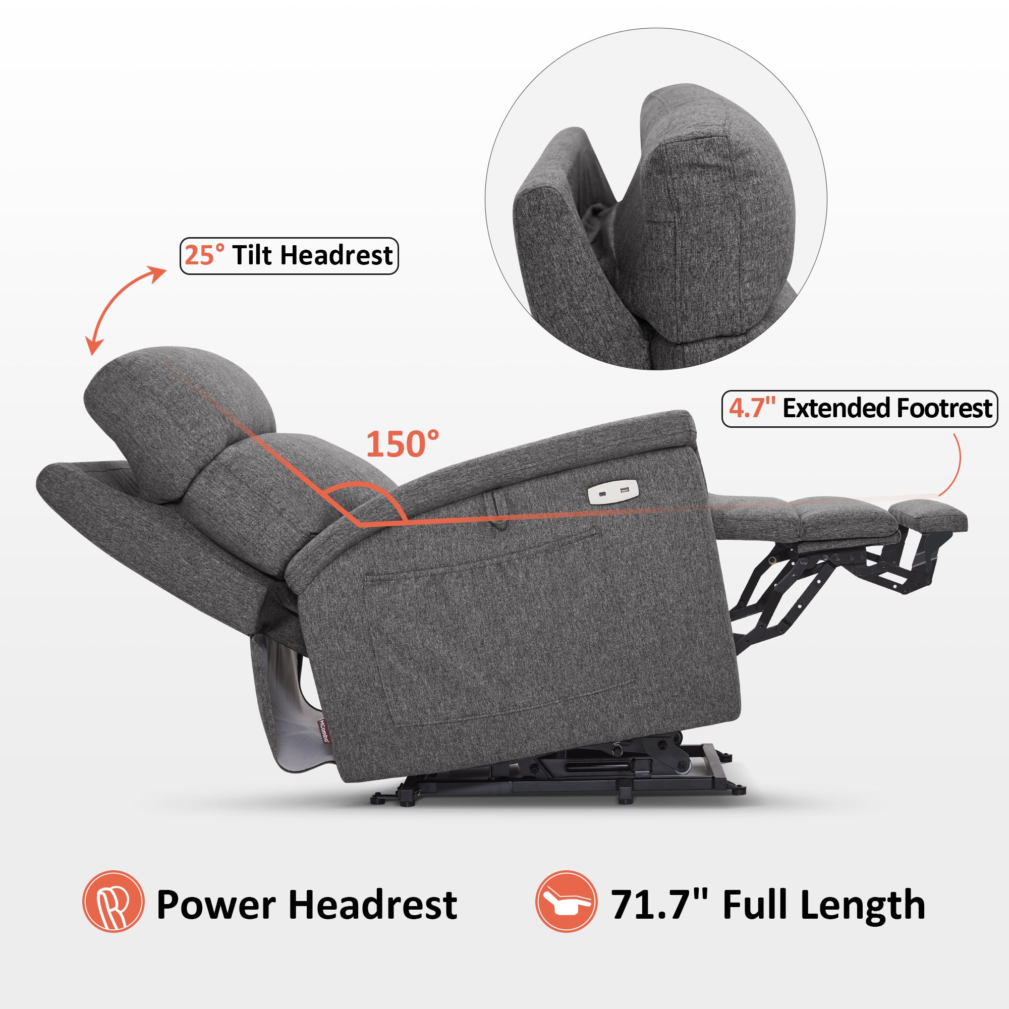 - Power Lift Assistance: Counter-balanced lift mechanism to assist the senior in standing up easily, and smoothly adjusting to the lift or reclining position you prefer by pressing buttons (Max reclining angle: 150°)