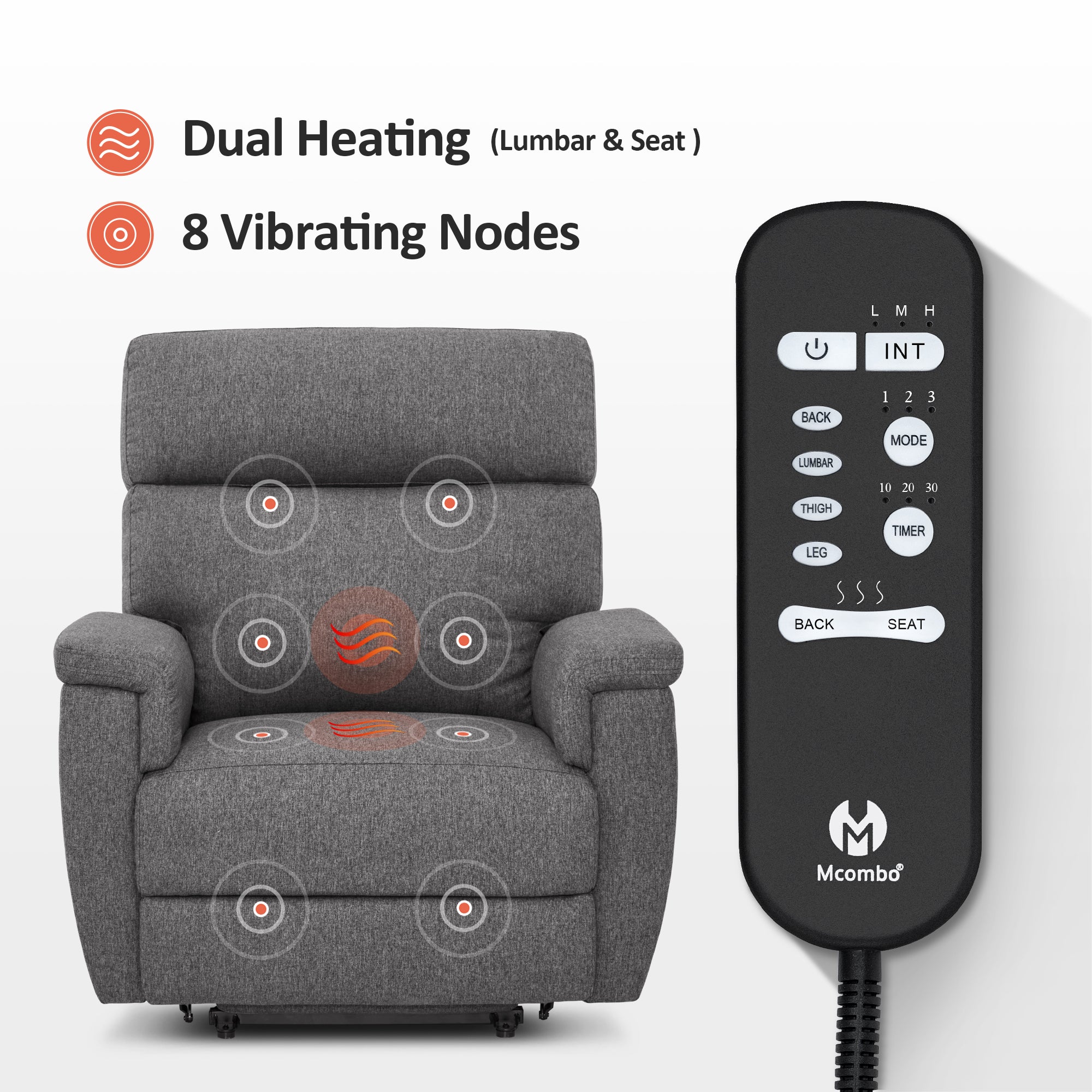 Yes, this chair has massage and dual heating functions (Lumbar and Seat Heating).