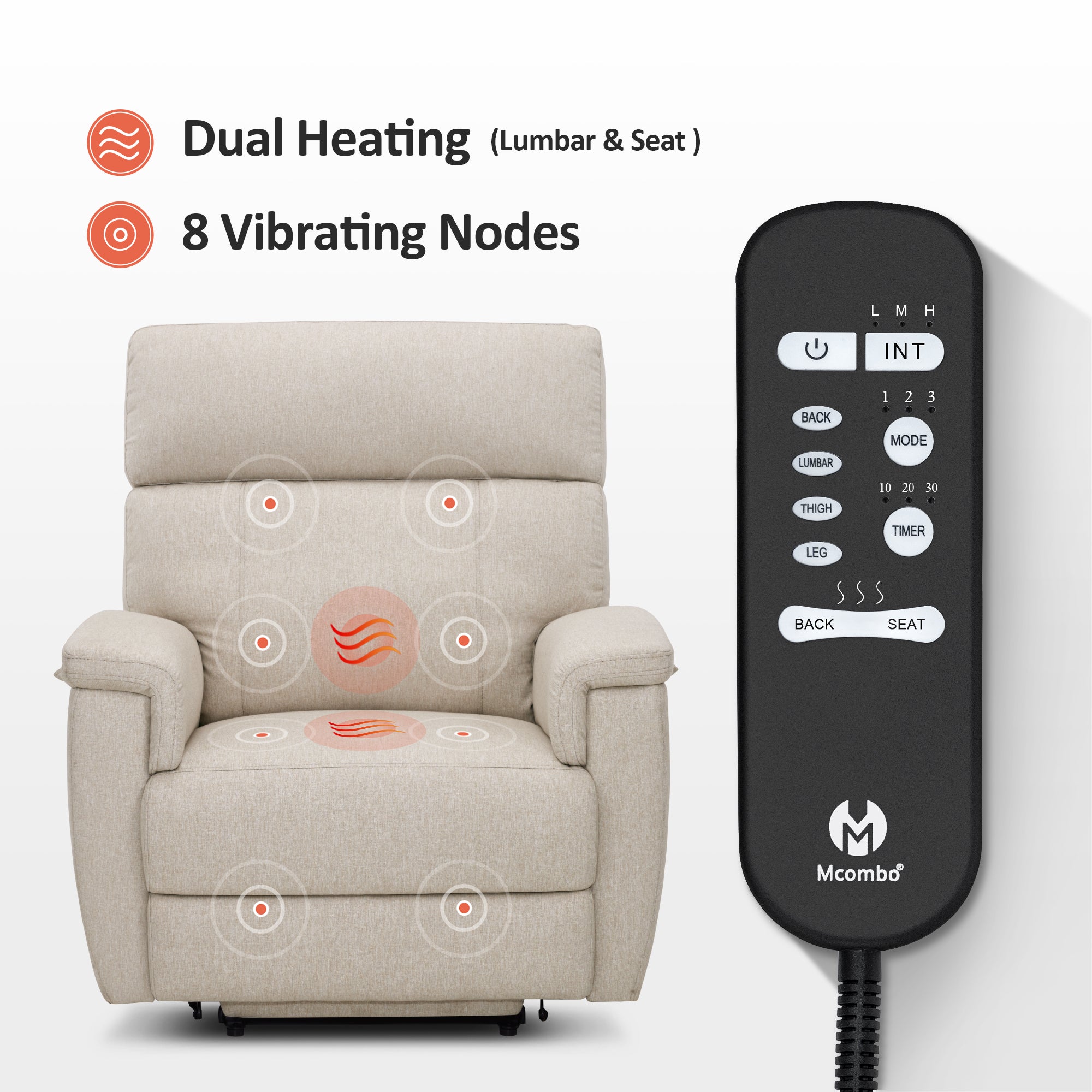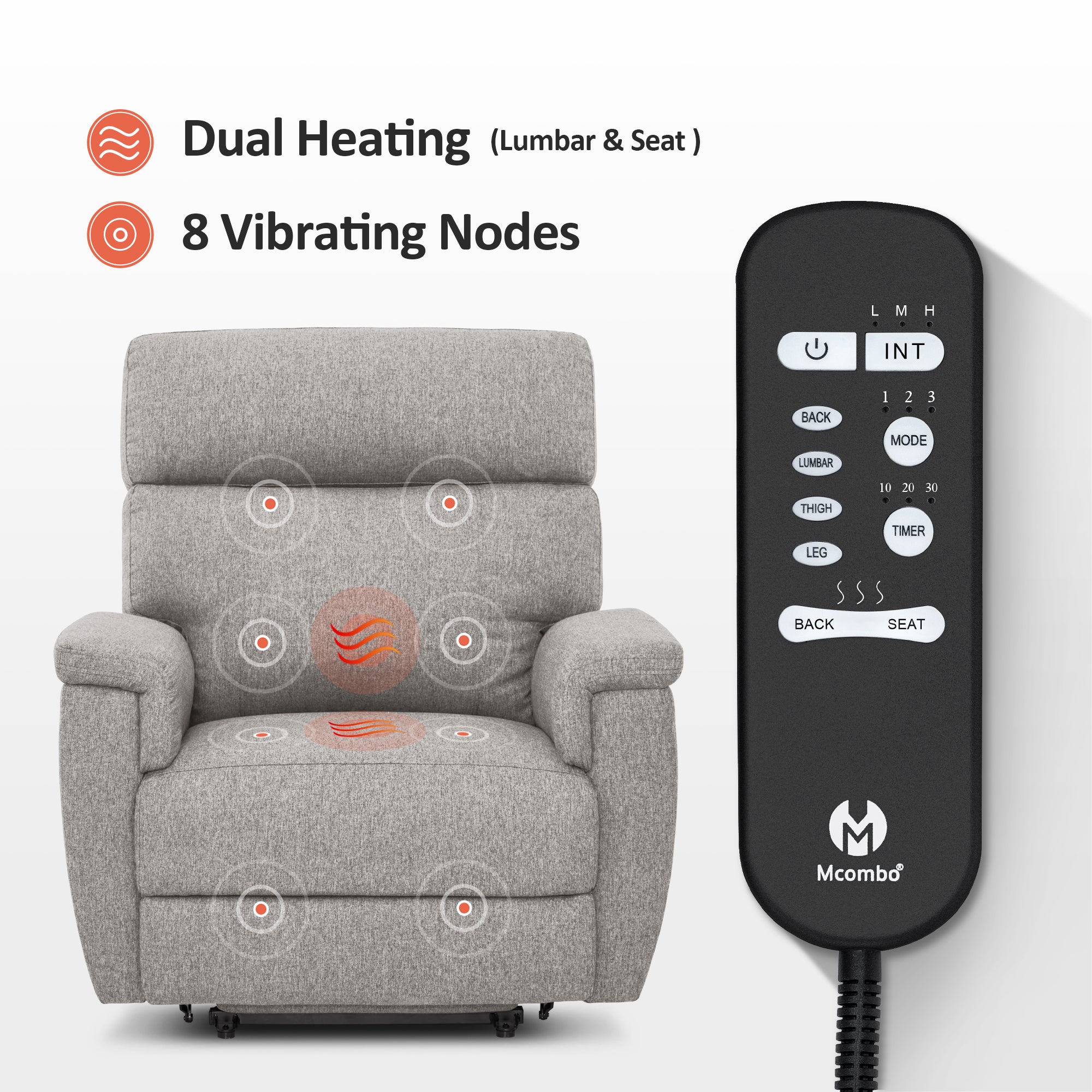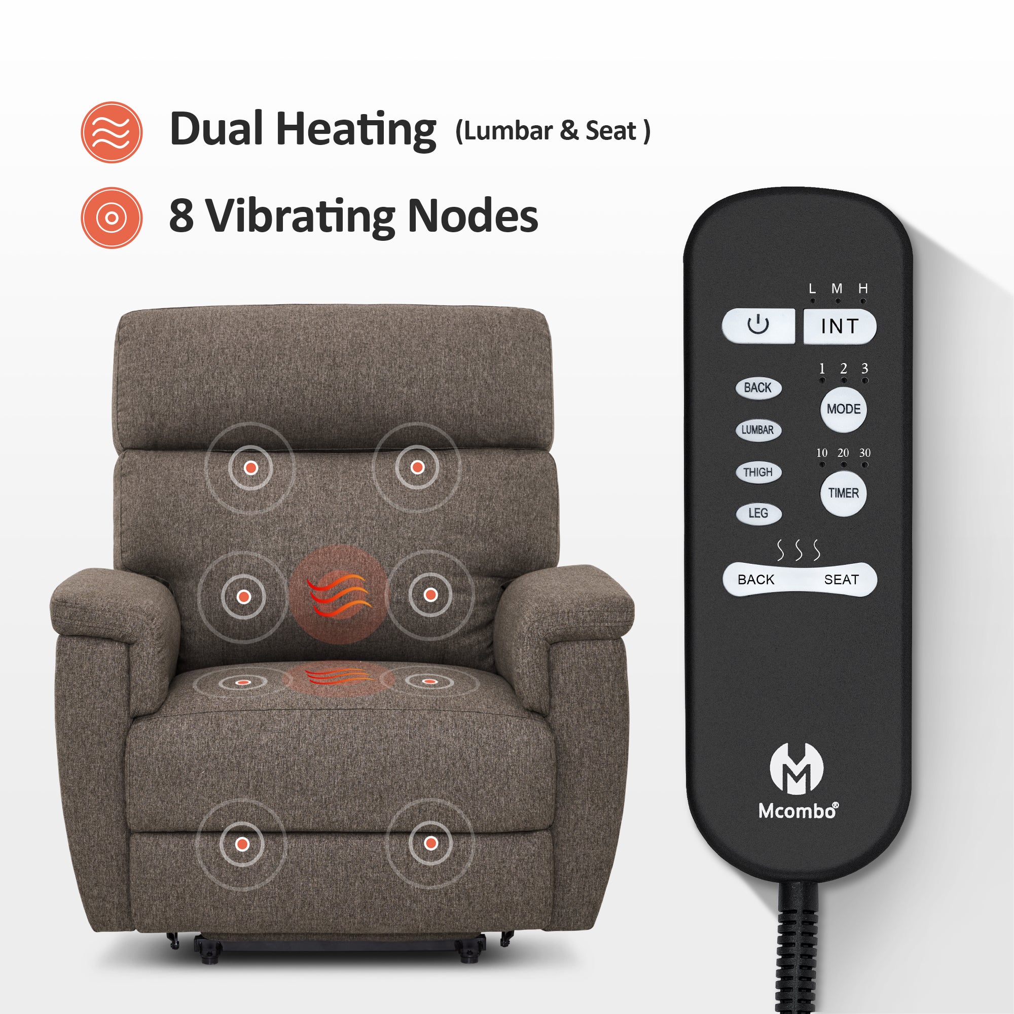 Power Lift Recliner Chair for Elderly, Massage and Heat, Fabric R7605