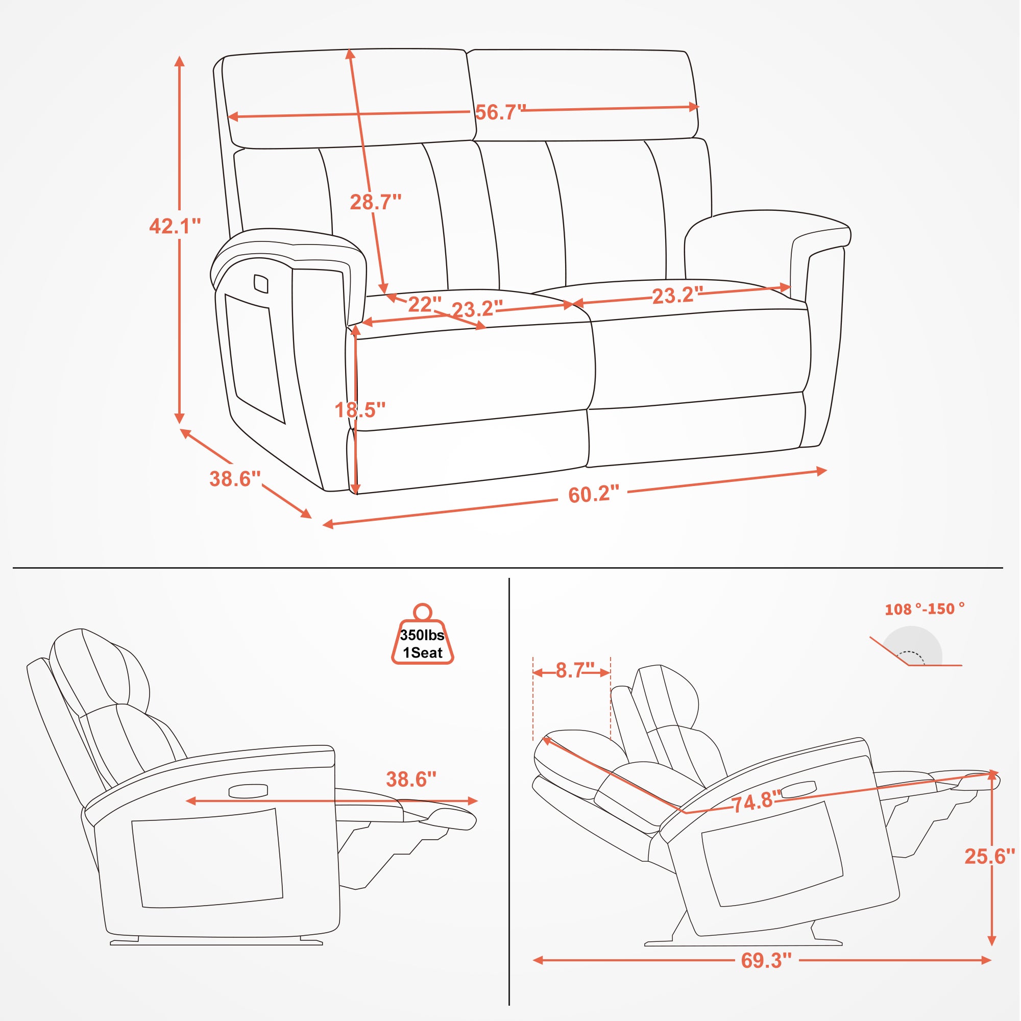 - Power Reclining Loveseat: Effortlessly adjust the footrest and backrest to your ideal reclining position with just two buttons. Each recliner loveseat sofa is independently adjustable, offering a reclining range from 108° to 150°
