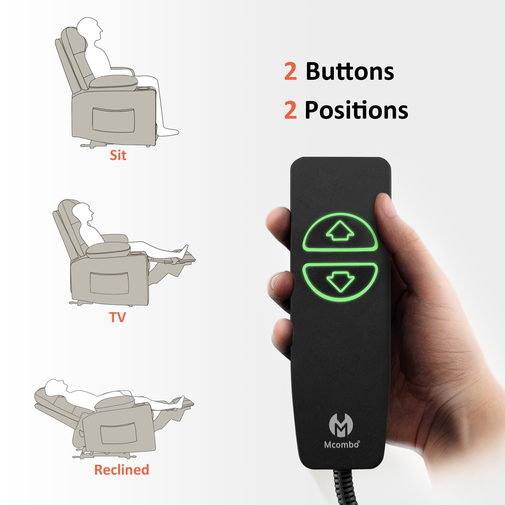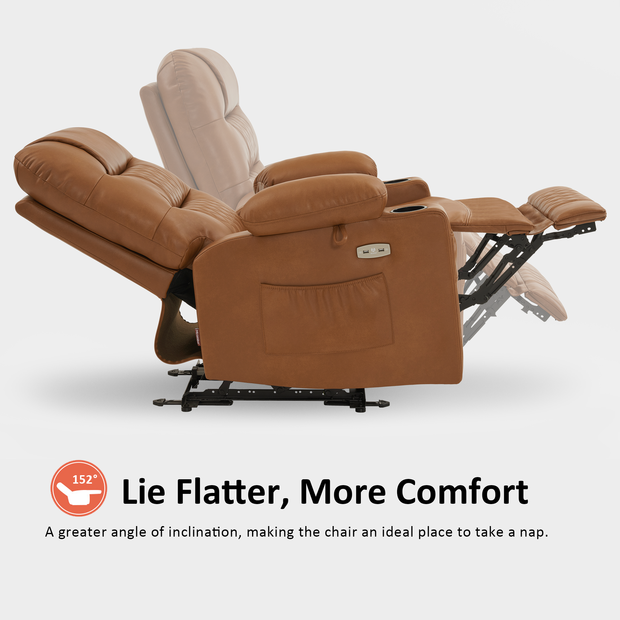 - Adjust recliner backrest and footrest to find relaxation position
