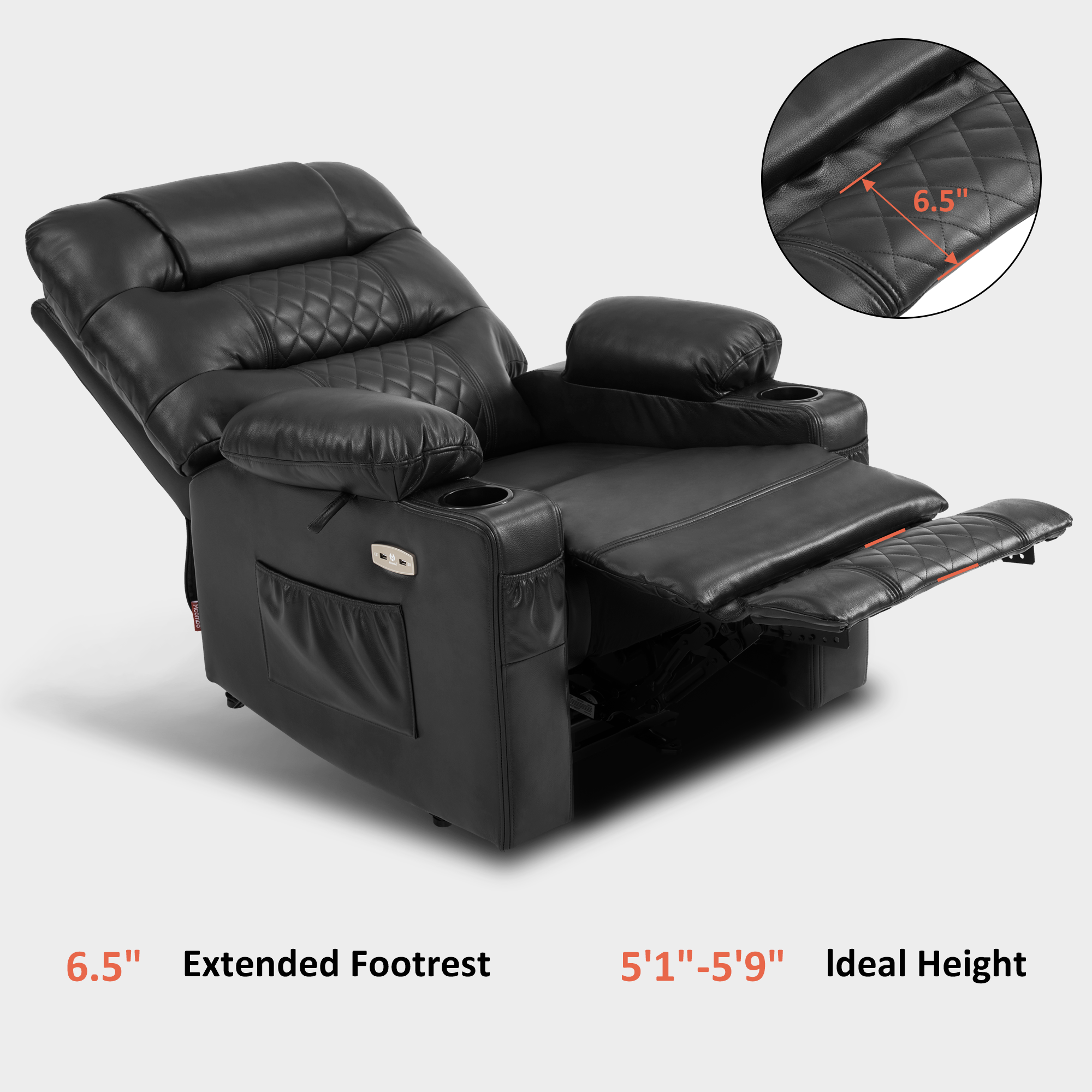 - 4.7" extended footrest ensures stretch fully and foot circulation