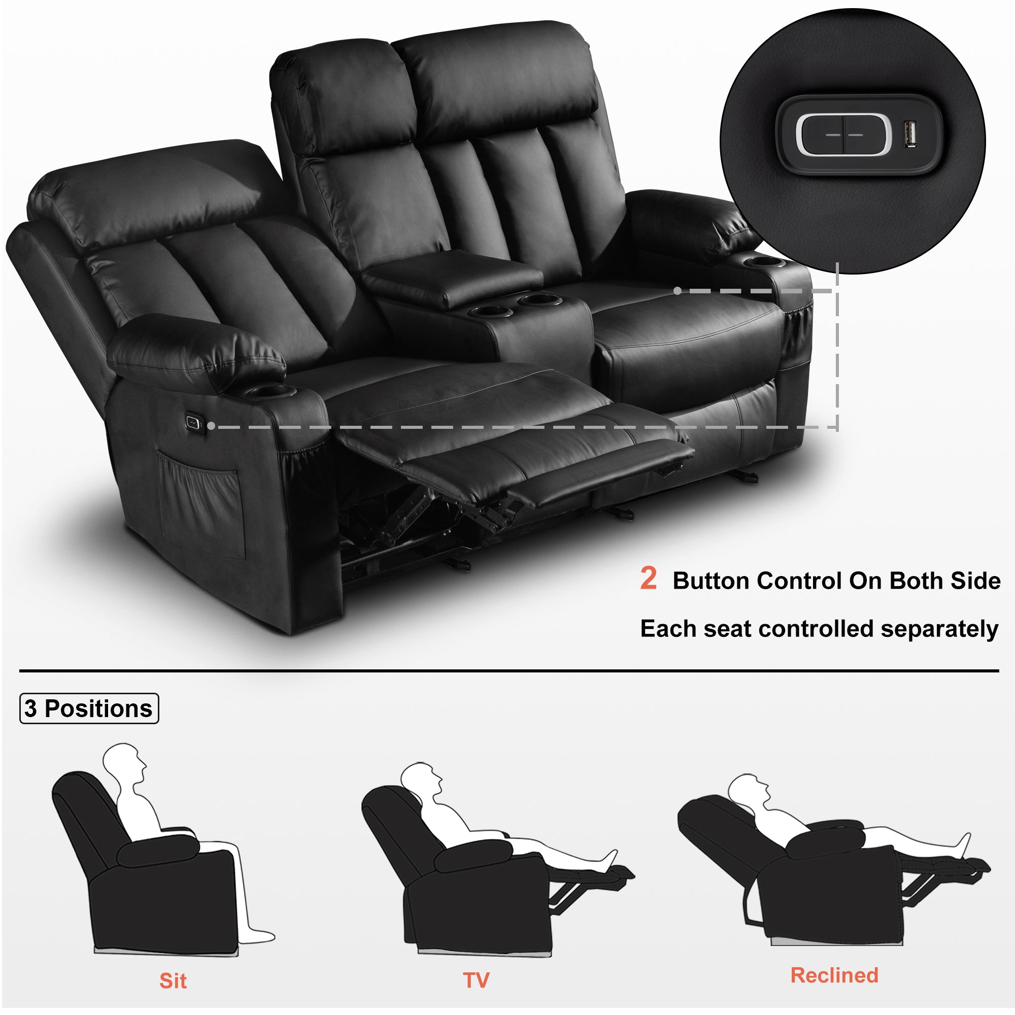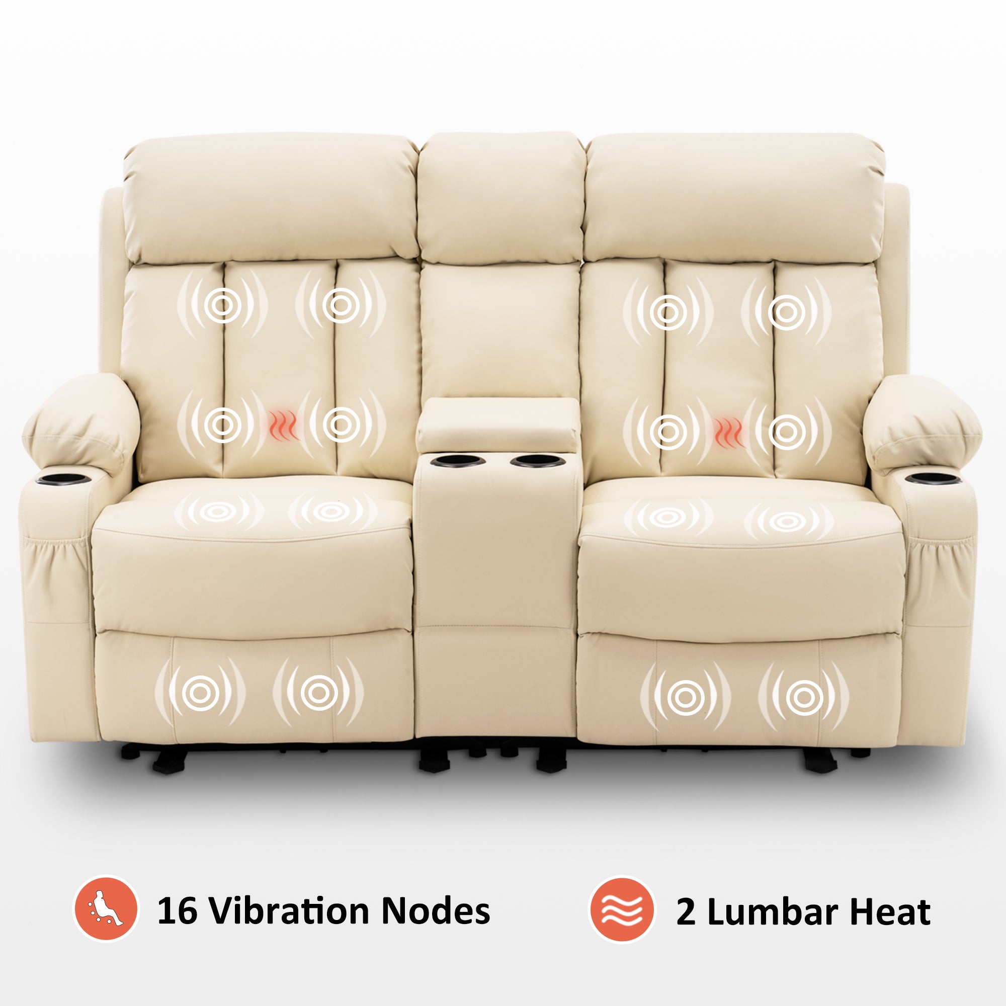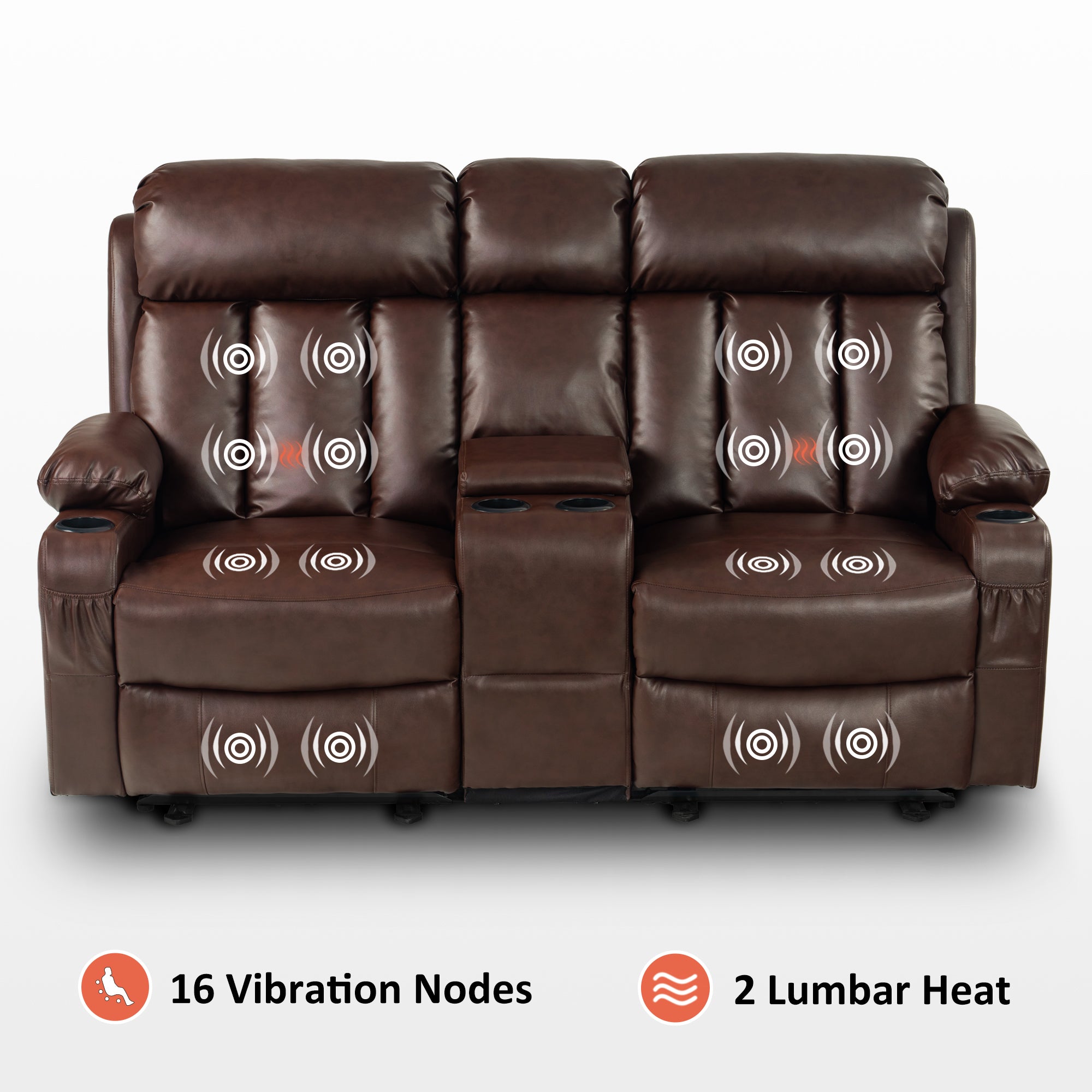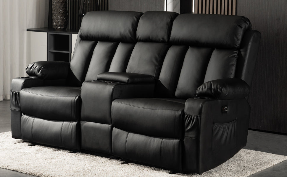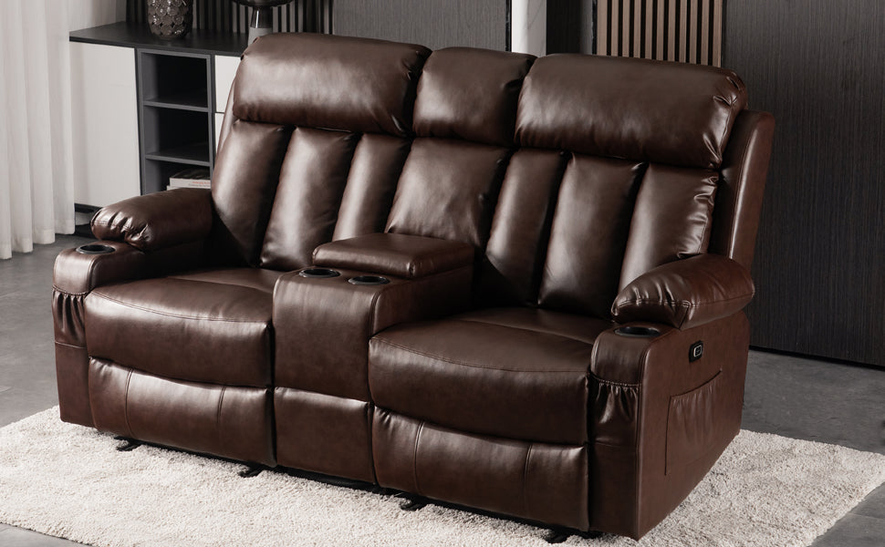 Power Reclining Loveseat with Console, Heat and Massage, Faux leather 6095