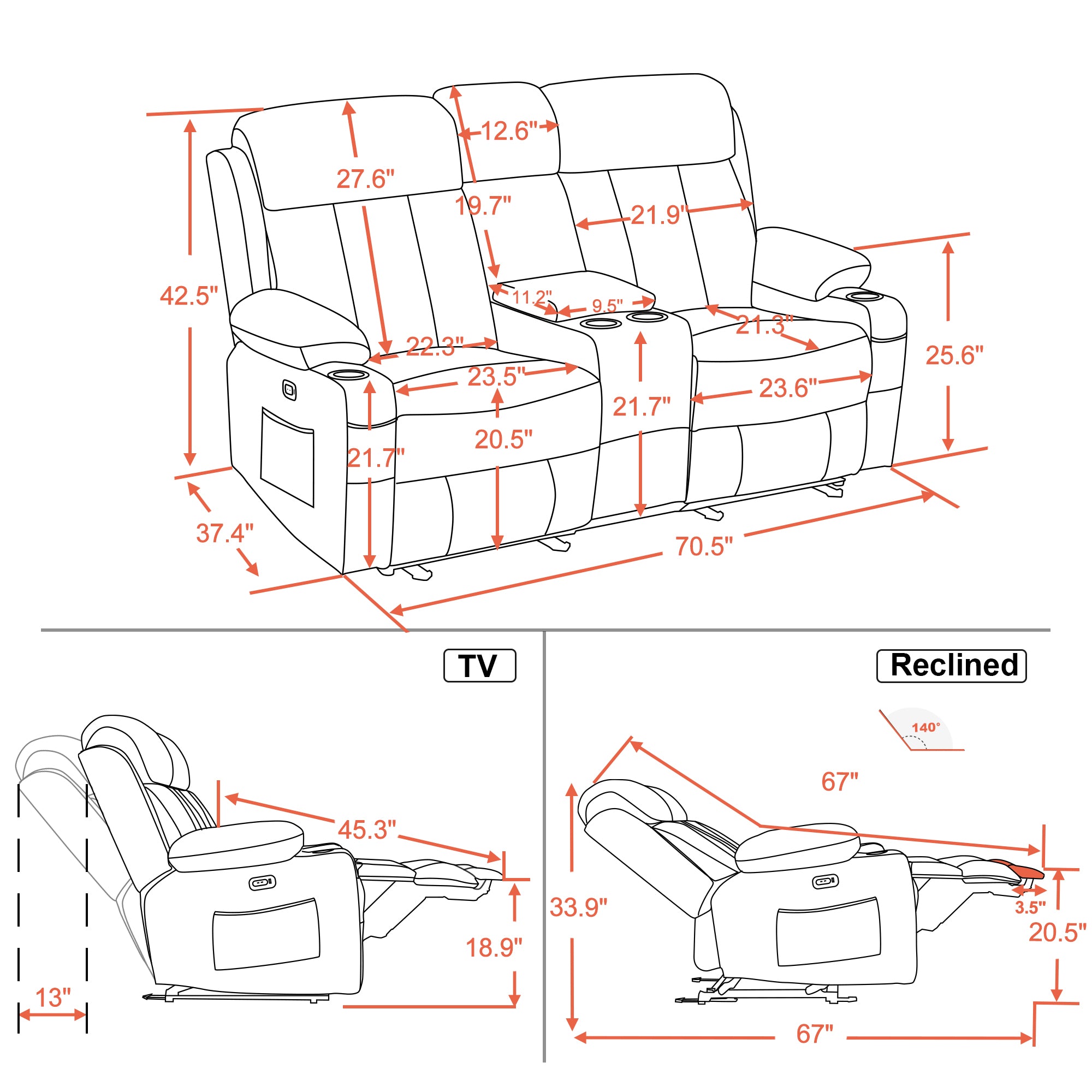 - Each seat adjusts independently for reclining to preferred position