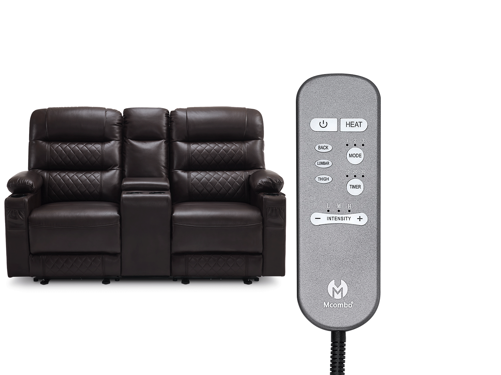 Power Reclining Loveseat with Console, Heat and Massage, Faux leather PR624