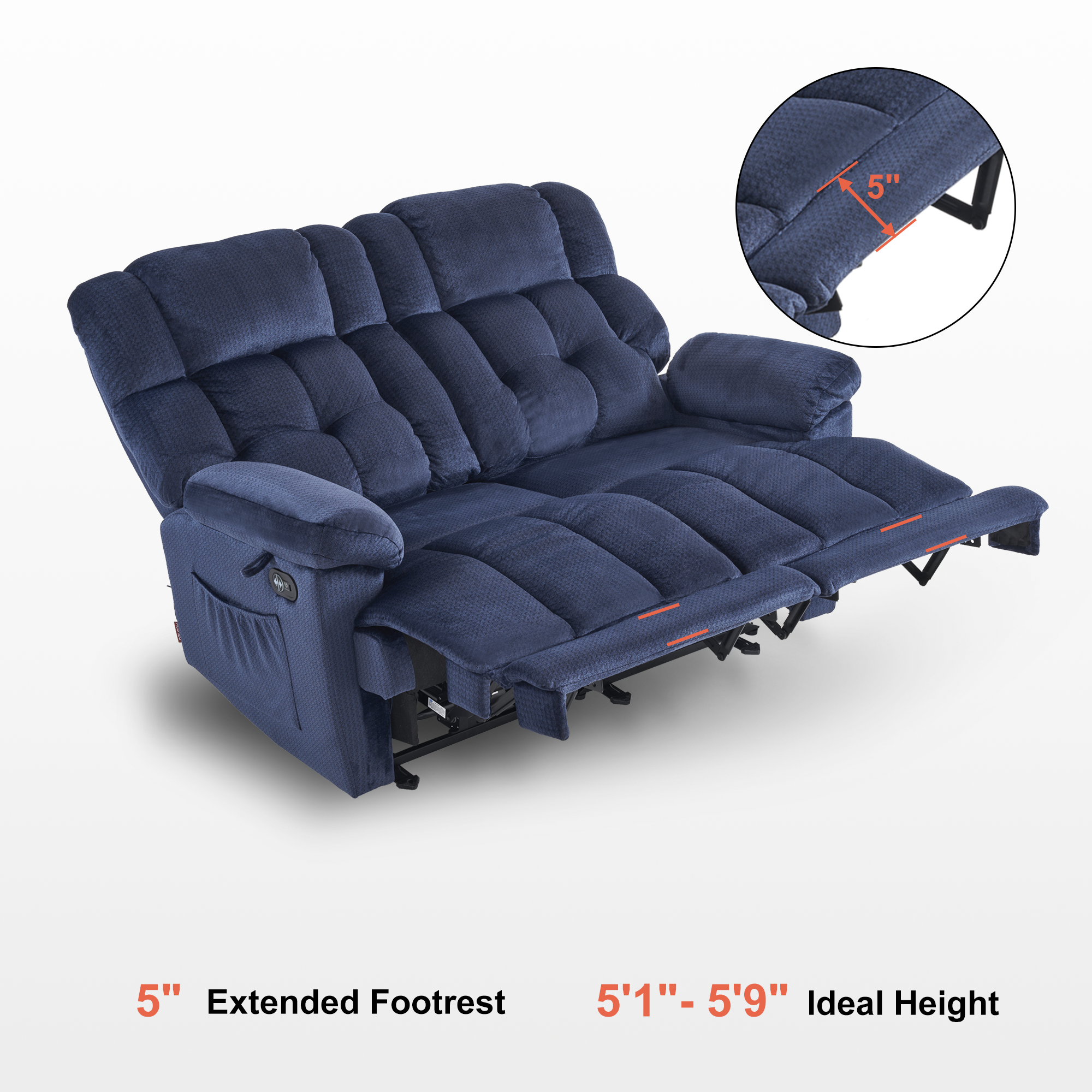 - Additional 5" extended footrest for full-body stretching