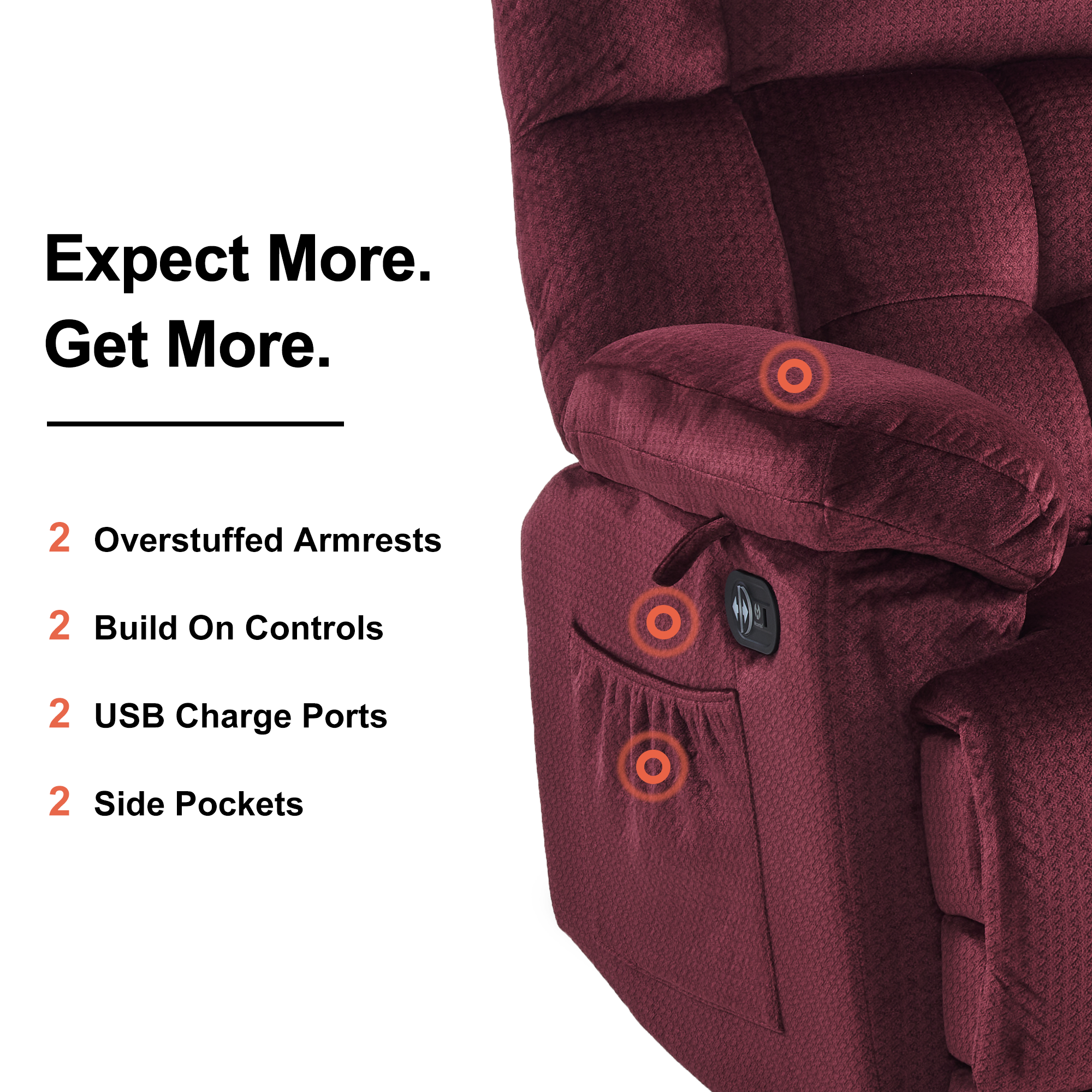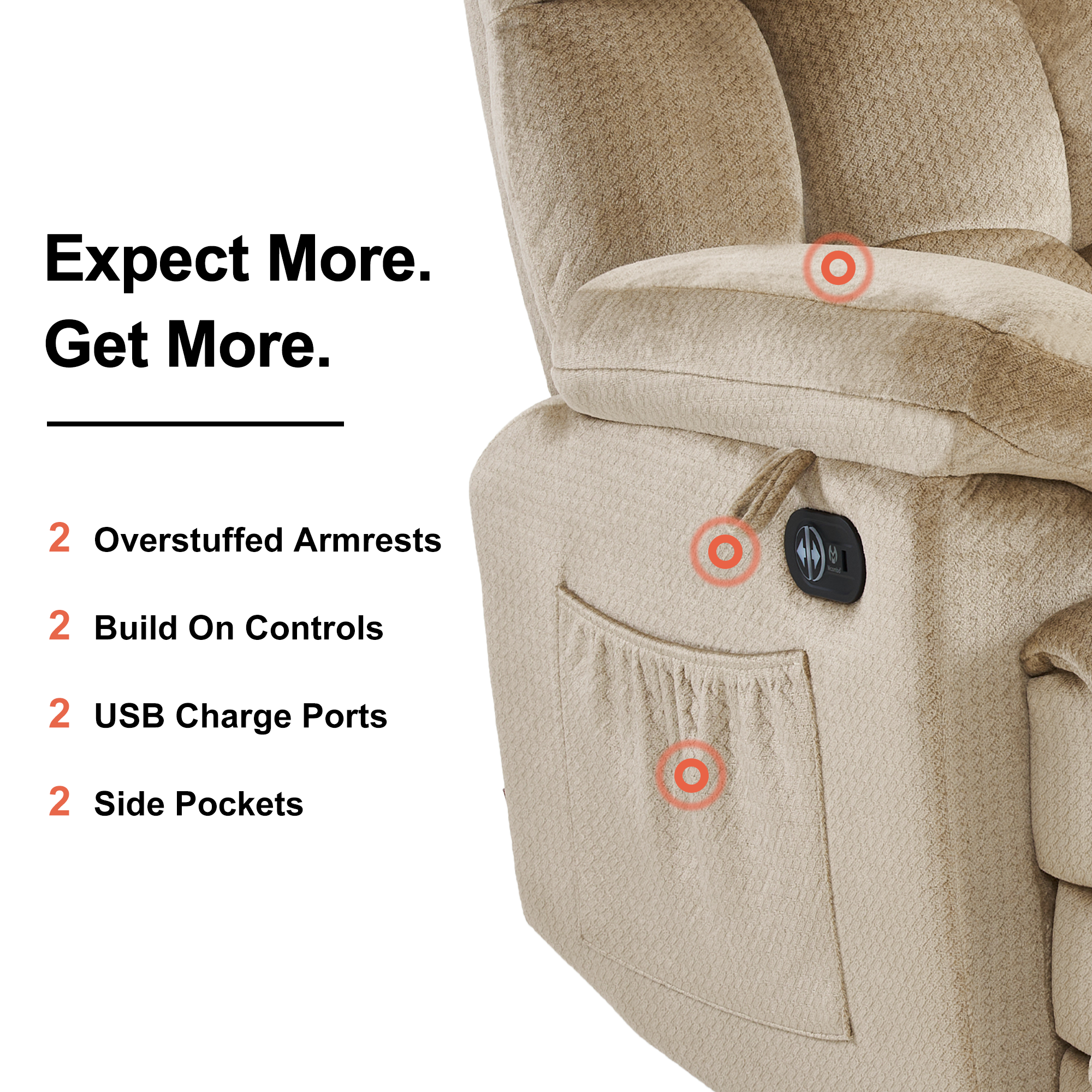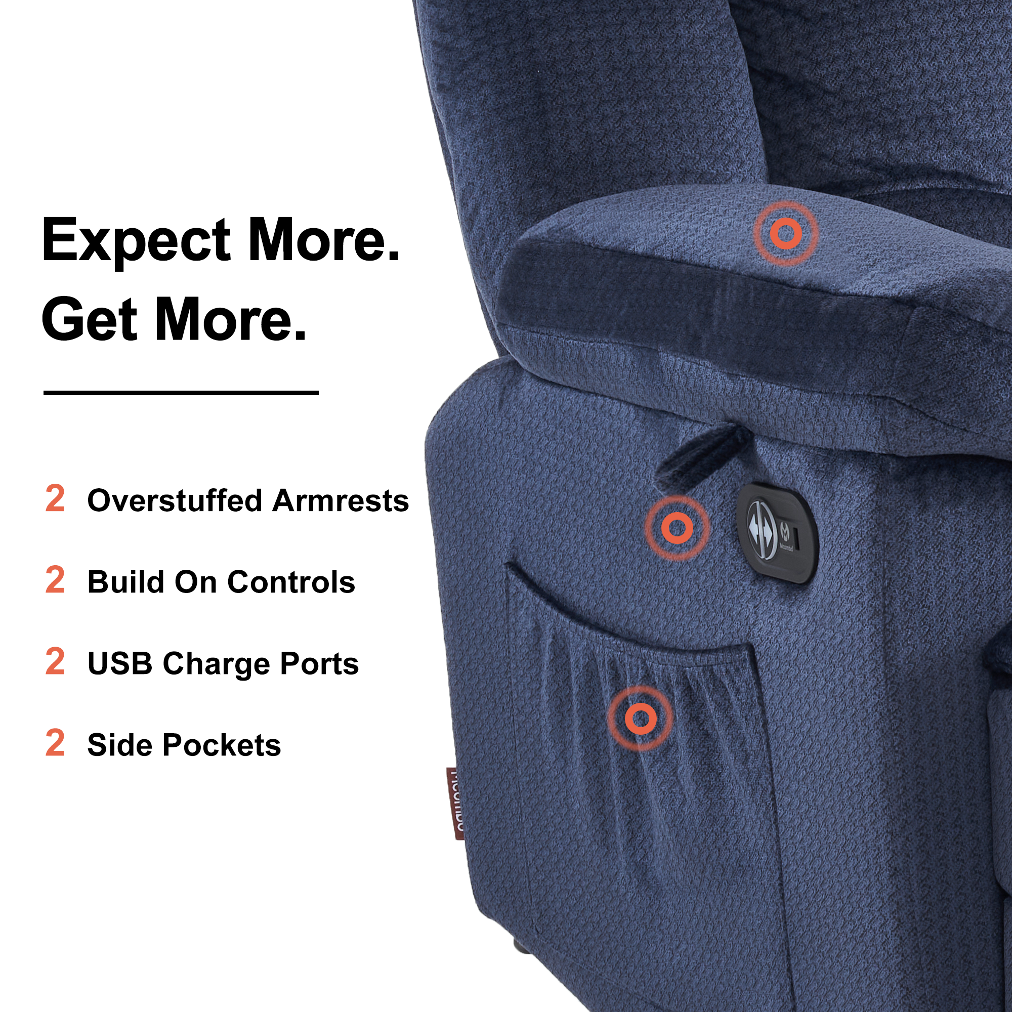 - Massage with 8 vibration points and lumbar heating
