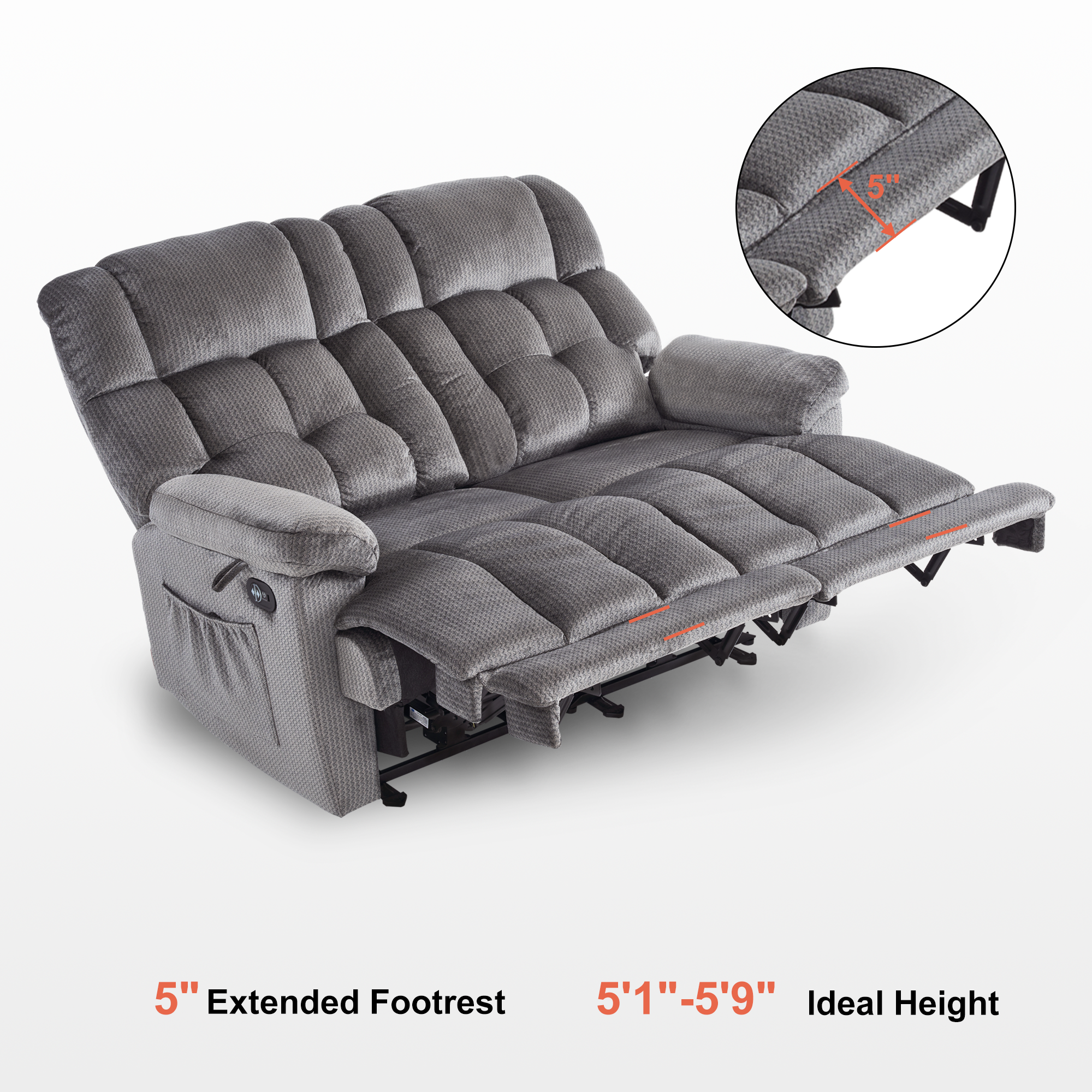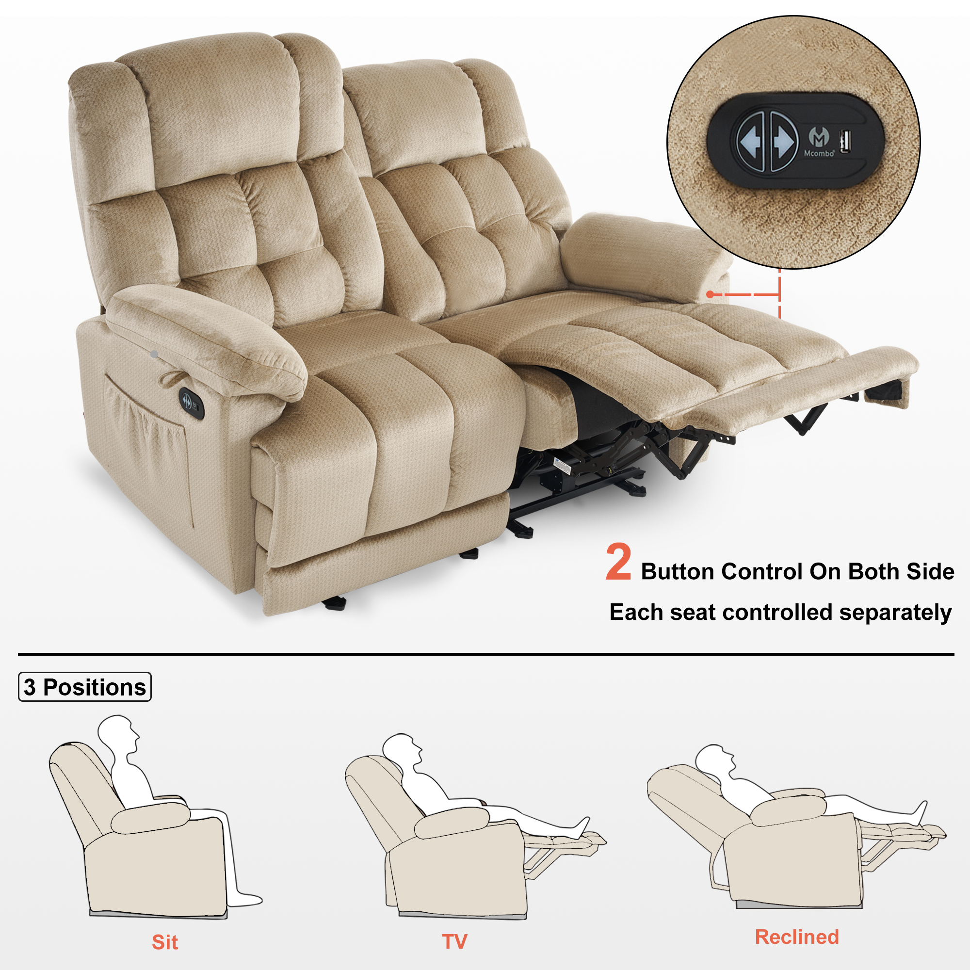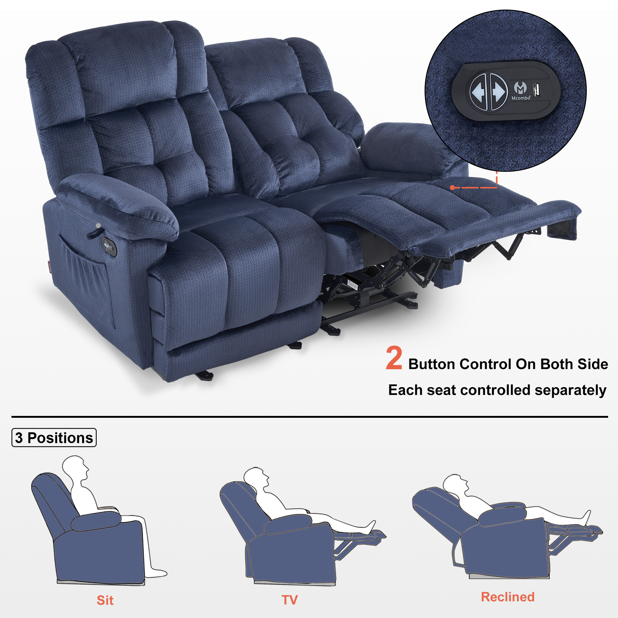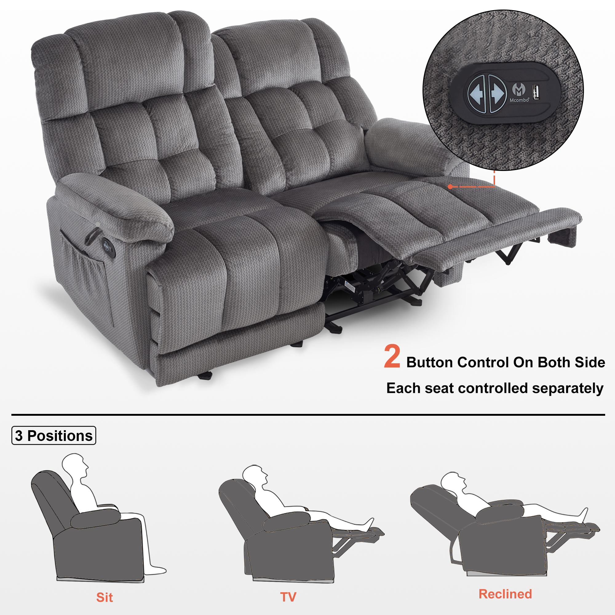 - Each seat adjusts independently for reclining to preferred position