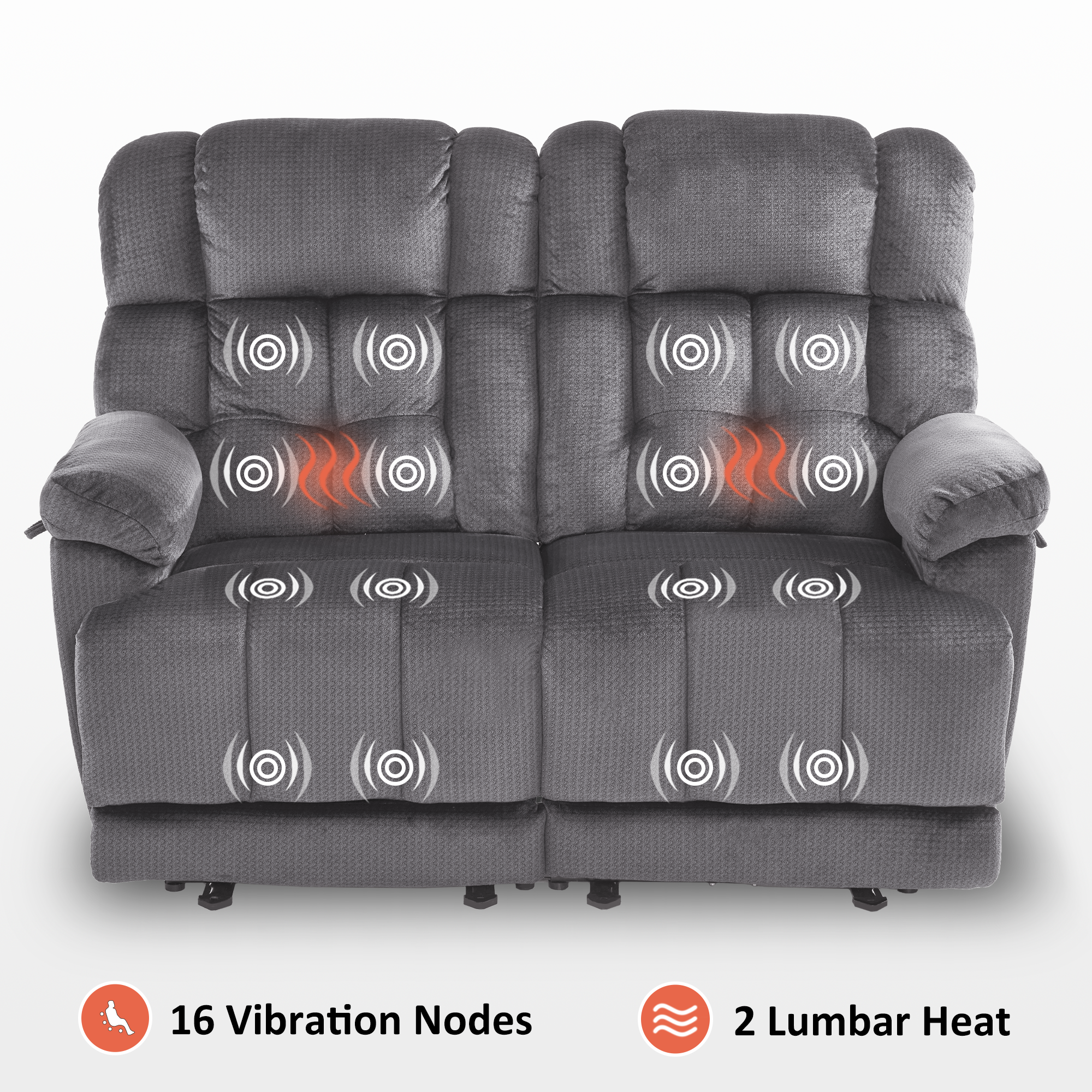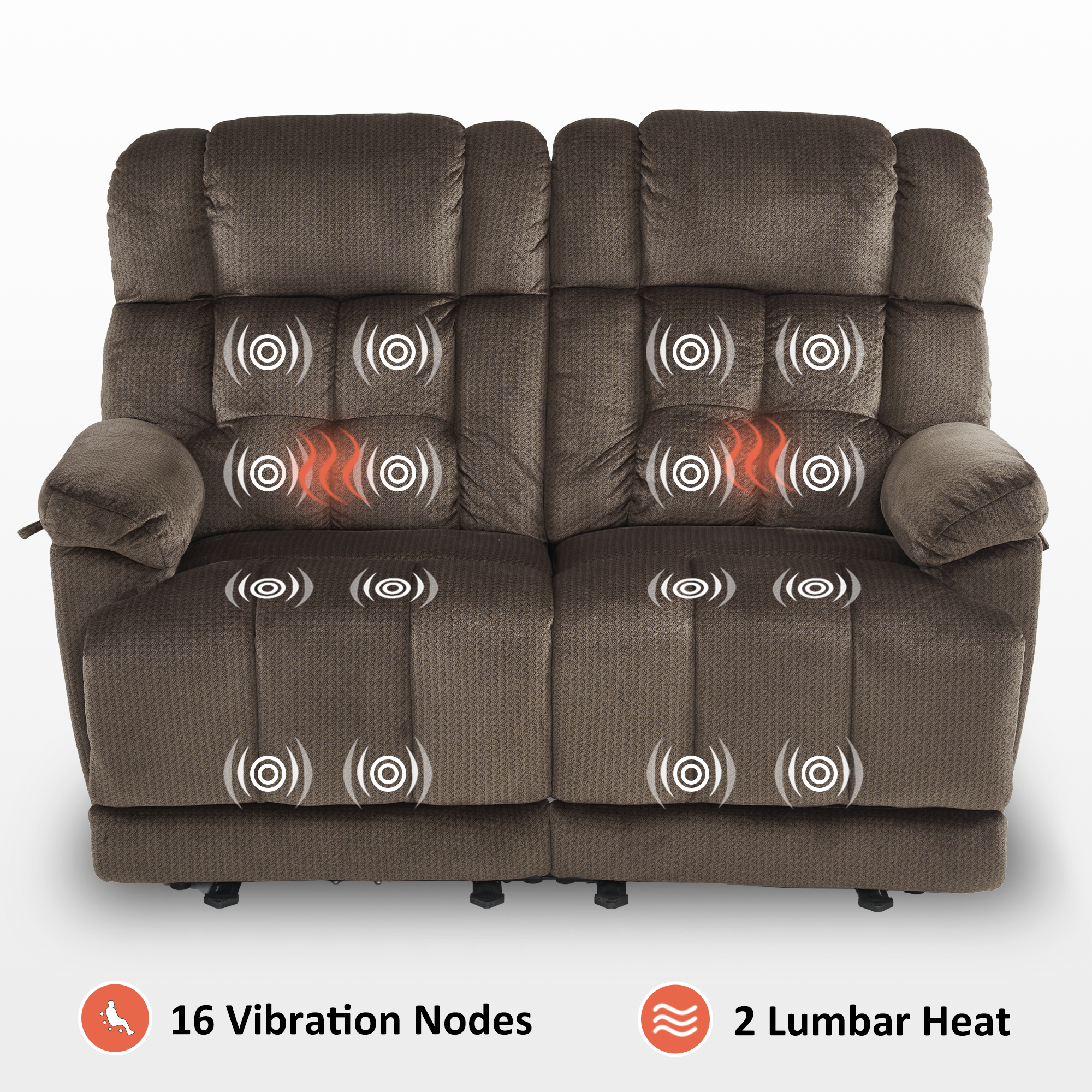 Power Reclining Loveseat with Heat and Massage, Fabric 6237