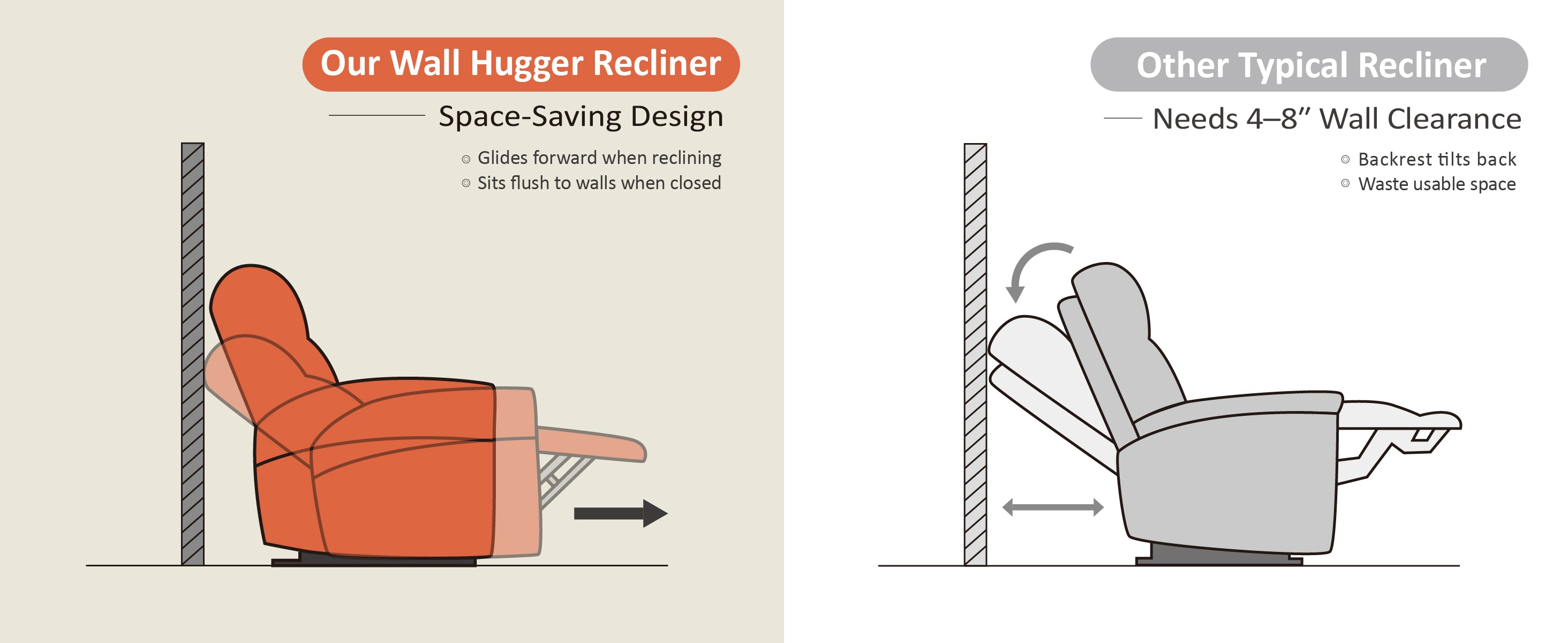 Because it lets you enjoy full reclining comfort with just 1.4" of space between the chair and the wall—perfect for small spaces!