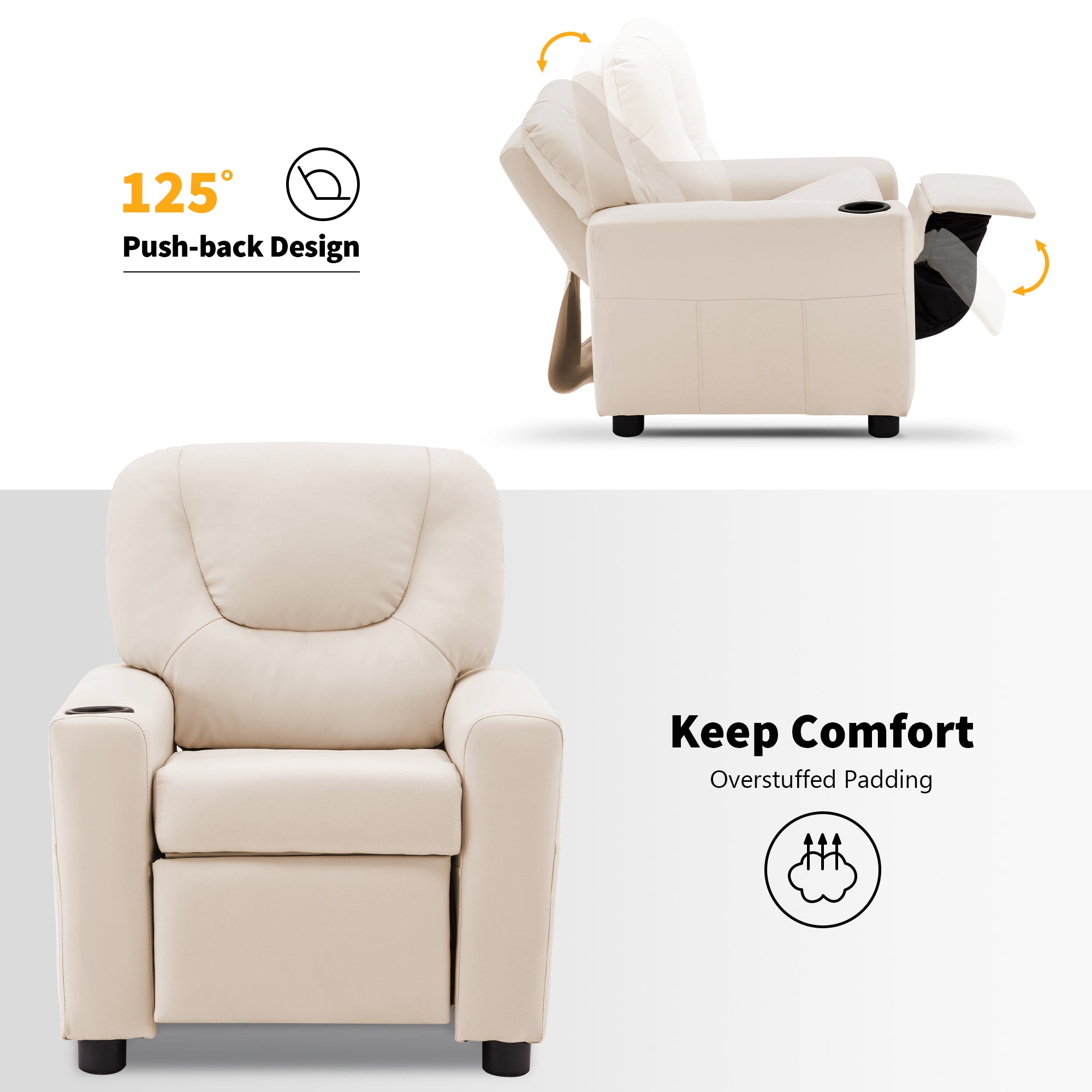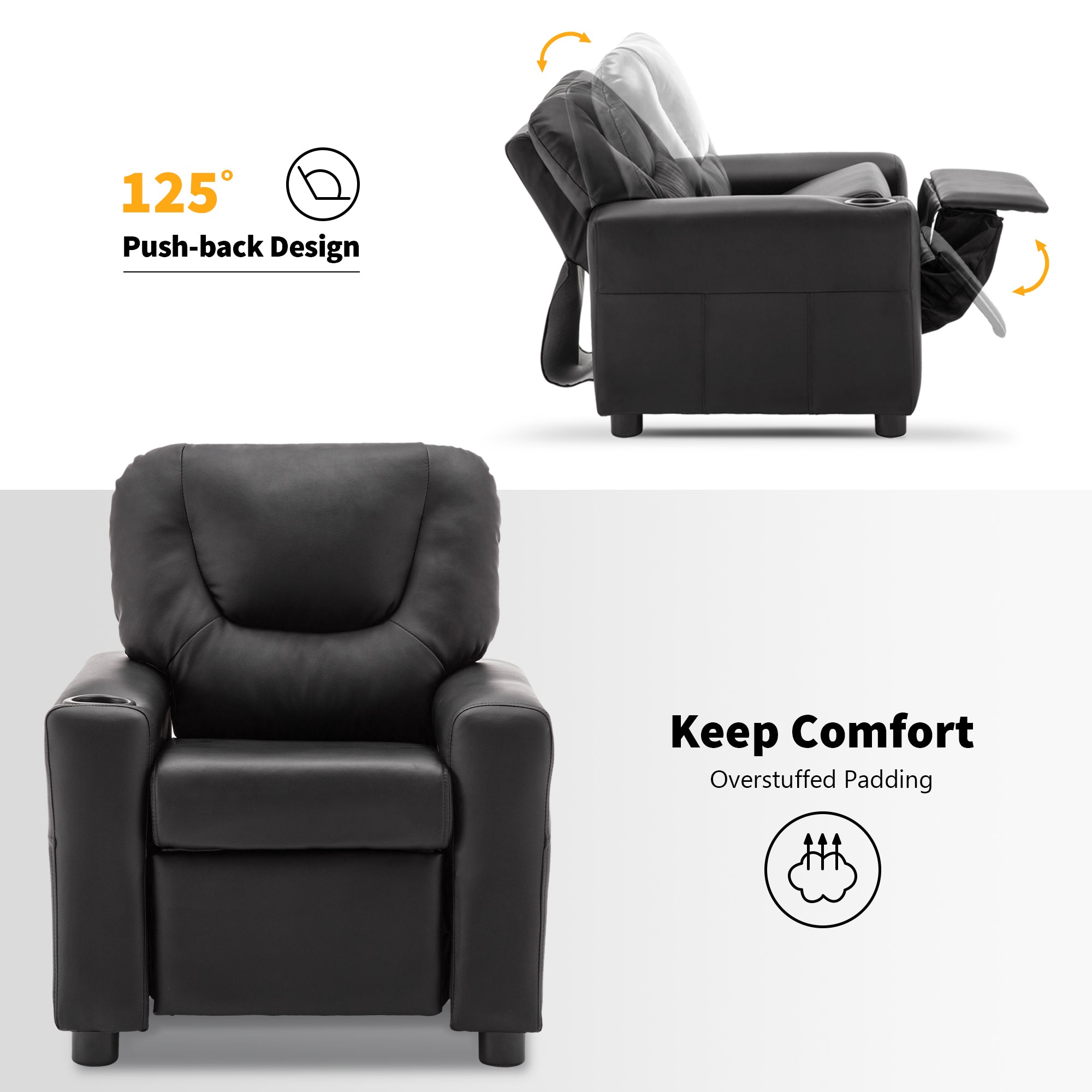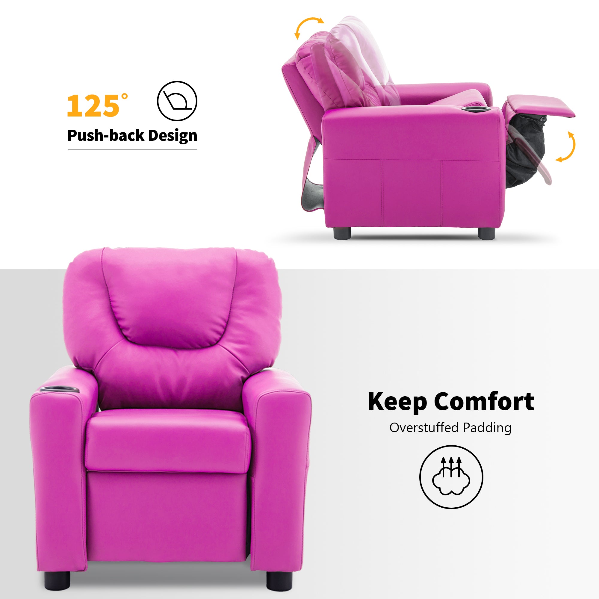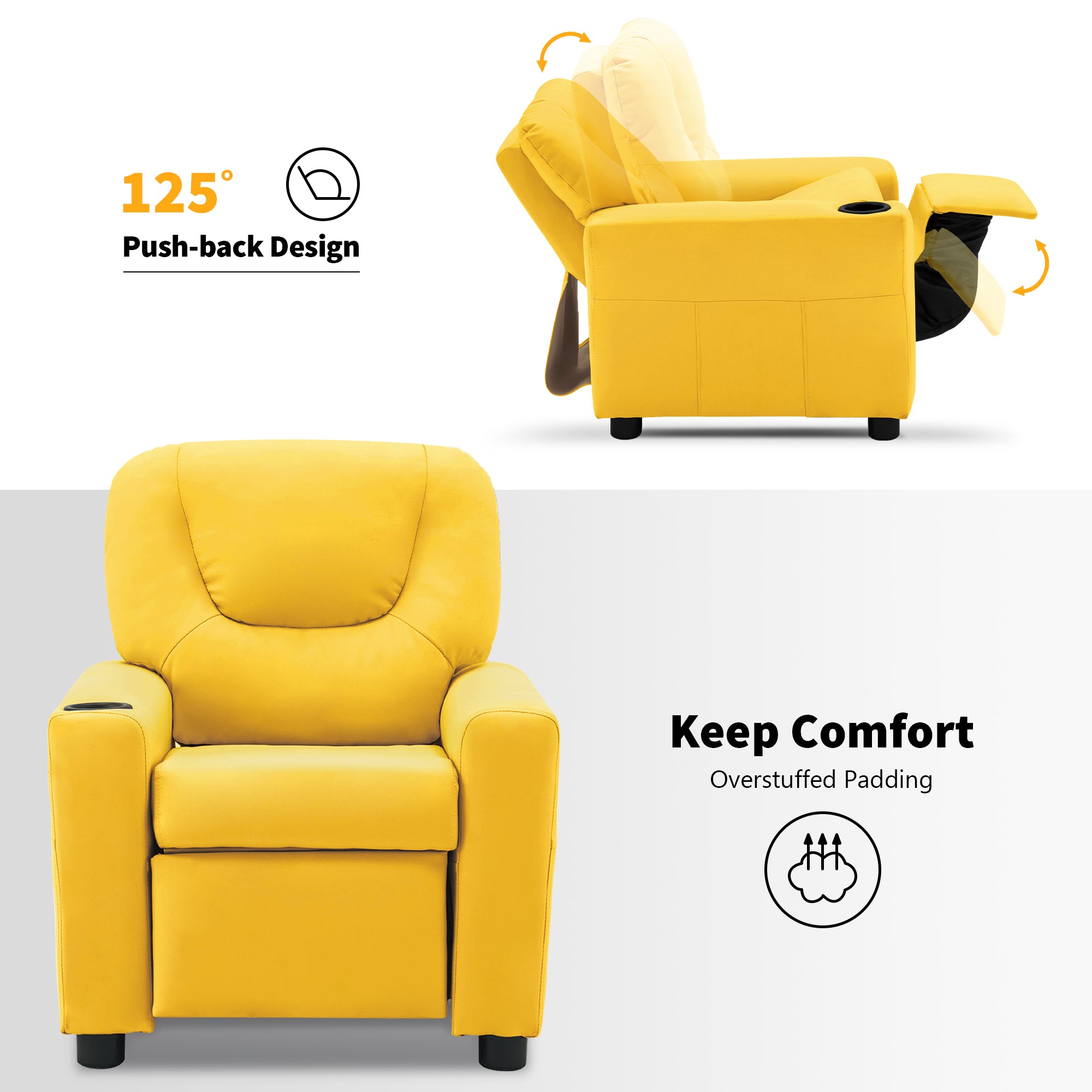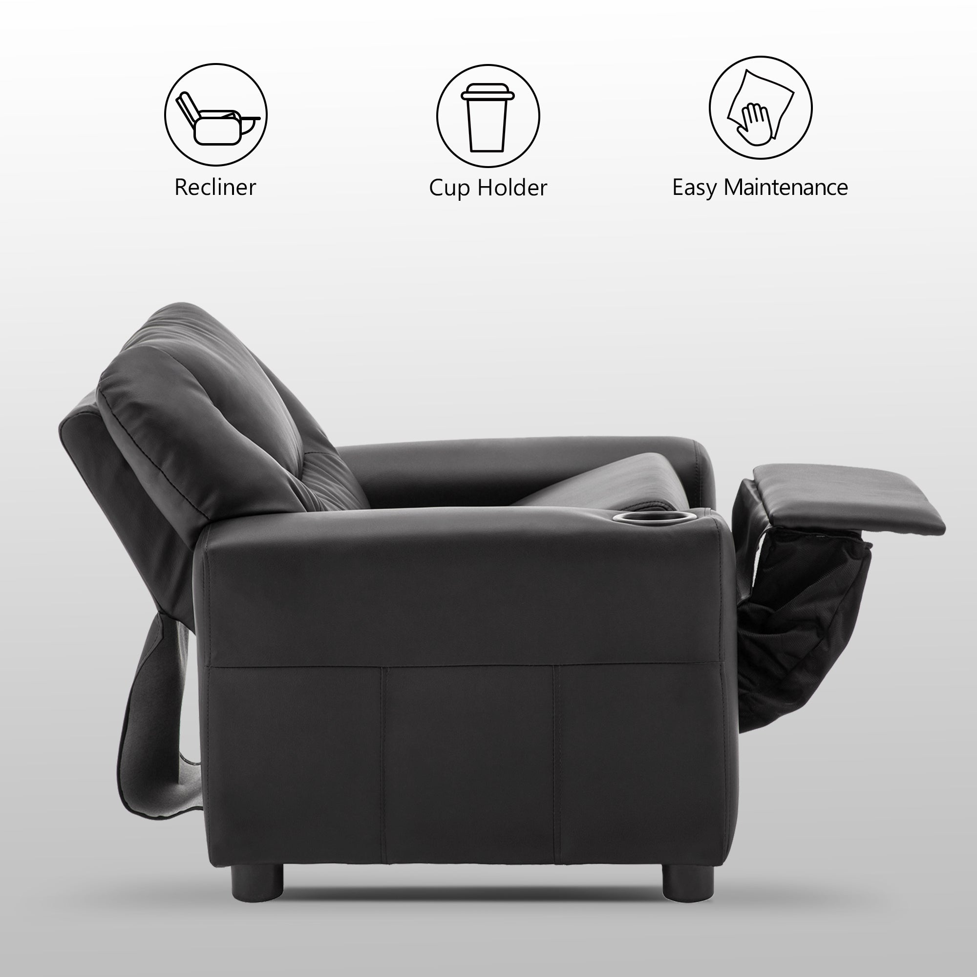 SOLID WOOD&STEEL FRAME: Kid's recliner is constructed of smooth vinyl and a steel interior frame, your kids can read, eat snacks, watch TV on their own furniture with much entertainment to spare the leisure time