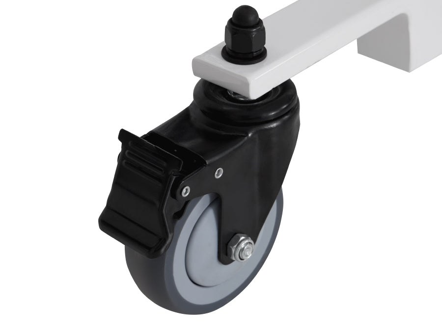 The 3" front casters combined with 4" rear casters allow the device to move smoothly on any surface, including carpet.