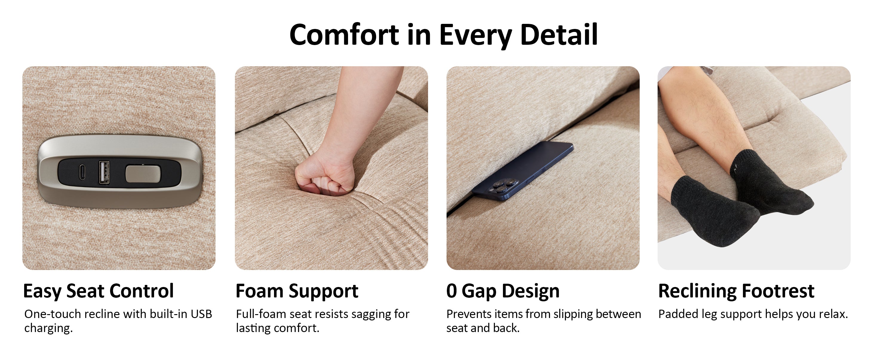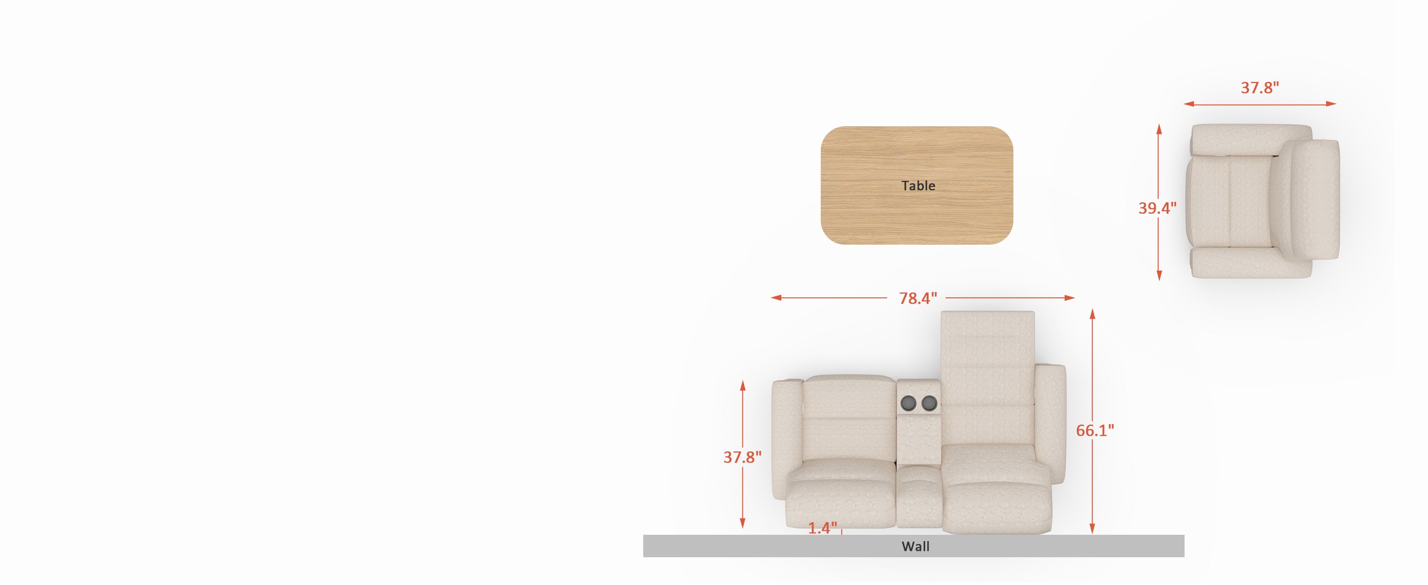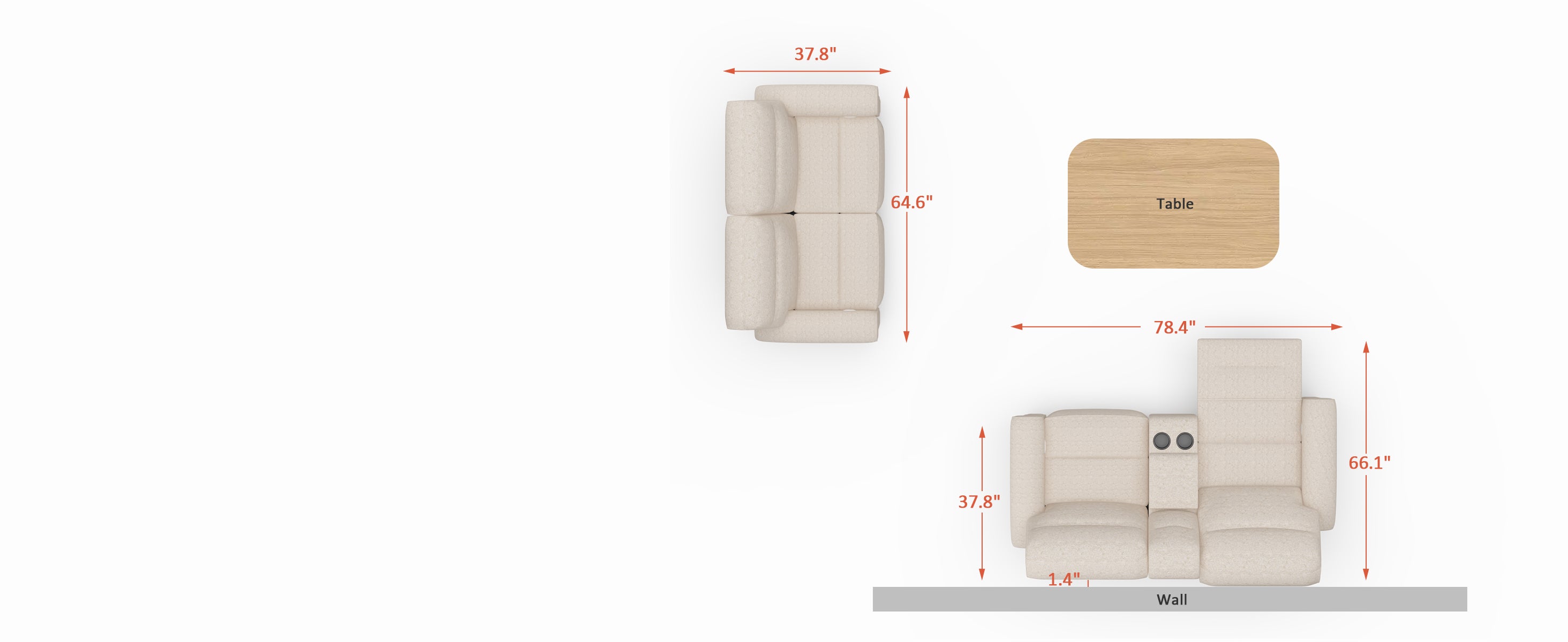 - Dual Independent Reclining Seats: Both outer seats recline independently, letting you and your partner relax at your perfect angle, from 108°for reading to 145°for napping
