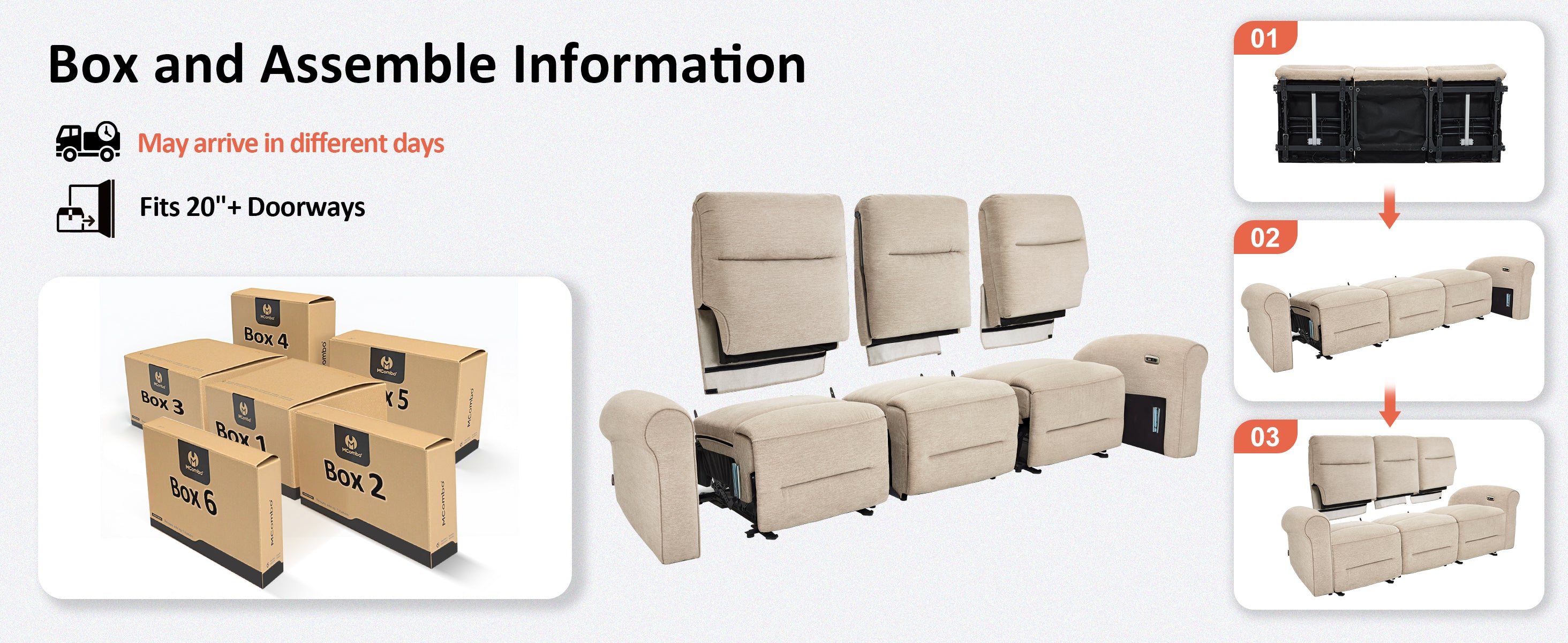 - Dual Independent Reclining Seats: Both outer seats recline independently, letting you and your partner relax at your perfect angle, from 108°for reading to 145°for napping