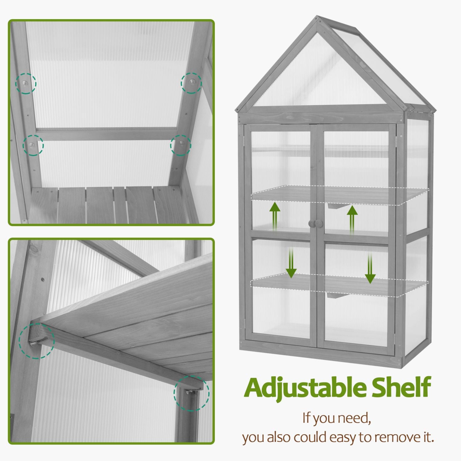- Adjustable Shelf: The shelf of this mini greenhouse could be freely adjusted height to fit various types of plants, which meets all your needs. (Five screw holes preset, you can also make holes by yourself to determine the height of the shelf).