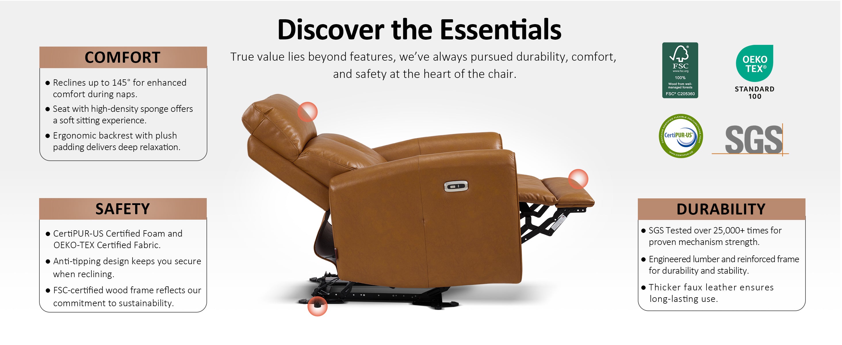 2-Year Warranty: Backed by a 2-year limited warranty, your investment is protected with free replacements for Reclining Mechanisms, Electrical Systems, Upholstery & Cushions, Wood/Metal Frame Structures. (Refer to the user manual for details.).
