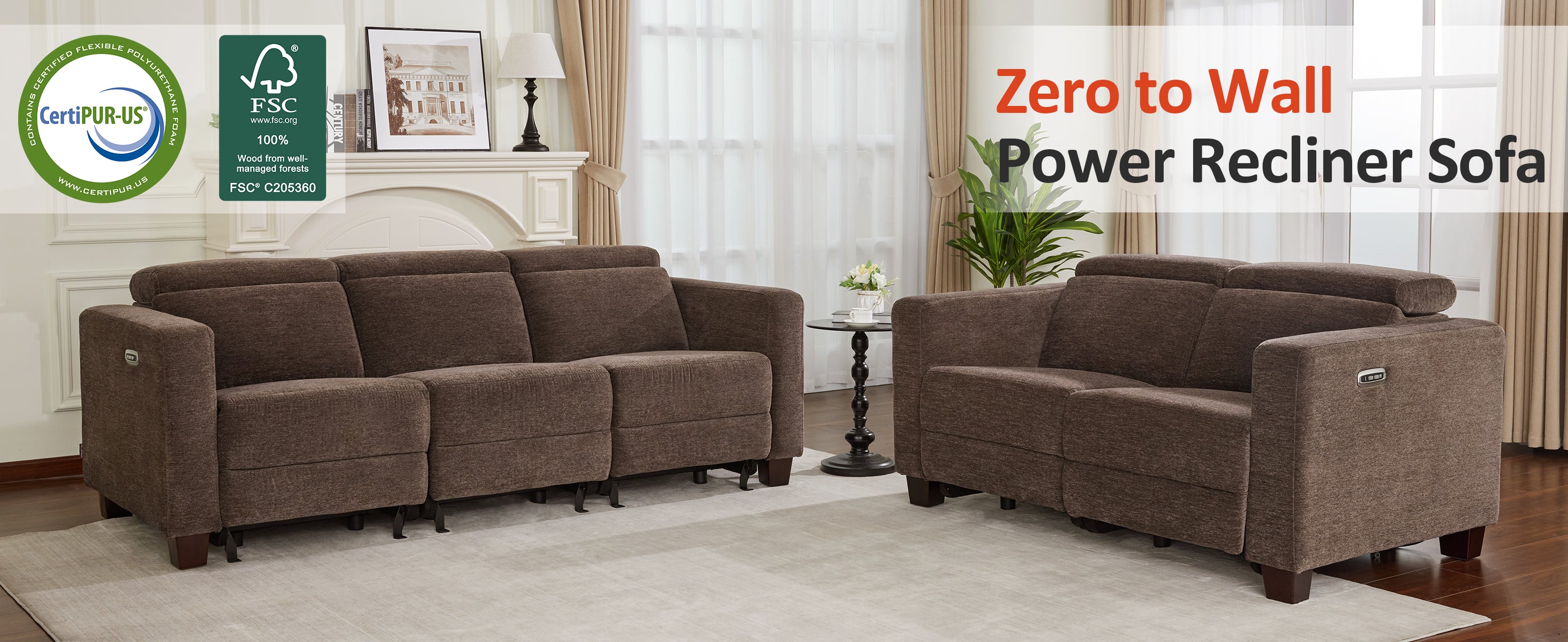 Zero Wall Power Reclining Sofa, Fabric HL198M2|HL198M3