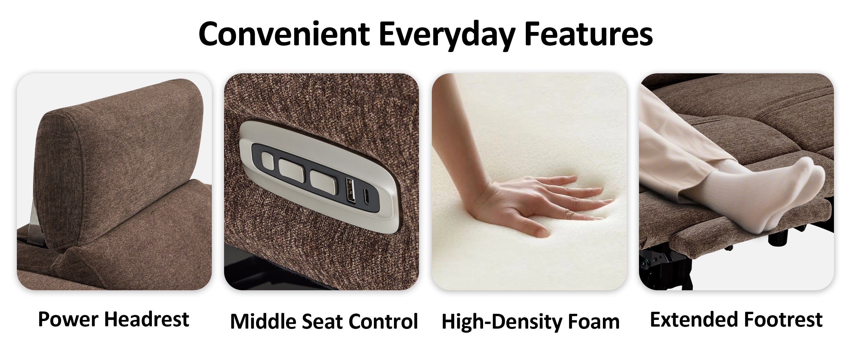 - Power Reclining Mechanism & Adjustable Power Headrest: Powered by industry leading mechanism, enjoy standard TV modes, plus a 145° recline for all-day comfort. The 90° folding headrest maintaining a sleek appearance while saving space. Whether you're sitting upright, watching TV or lying to rest, it ensuring effortless comfort of your head and neck